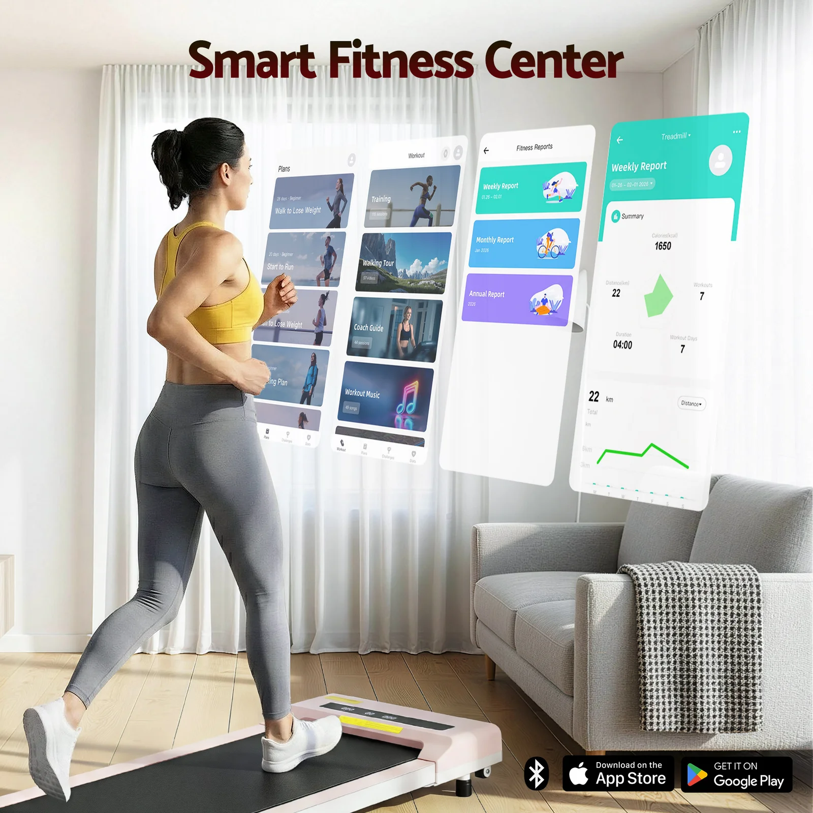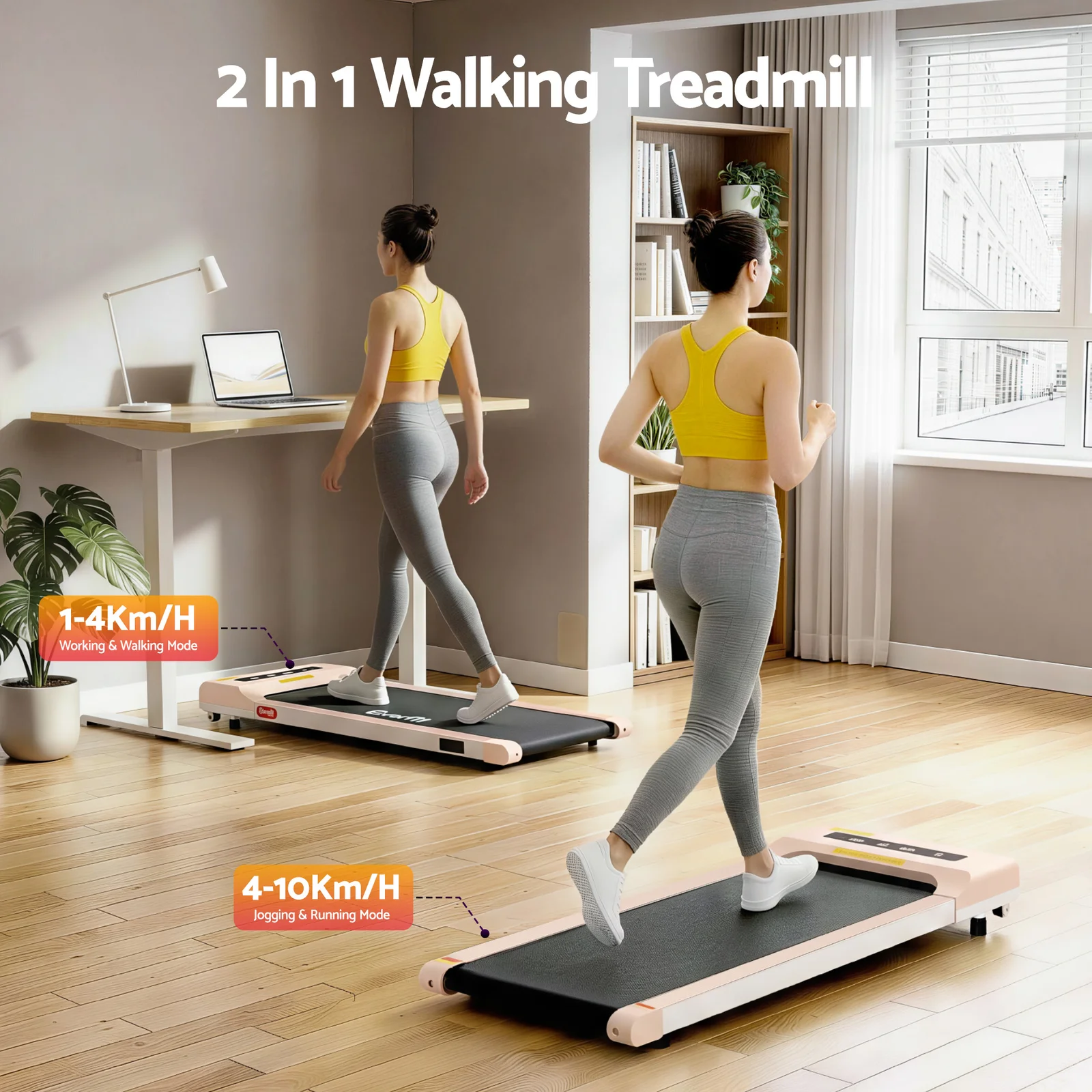 For a truly effective approach to weight loss and toning, our Everfit Walking Pad is your perfect companion. Compact and sturdy, the walking pad allows you to perform essential cardio exercises within the comfort of your home. It is foldable, easy to move, and comes ready to hit the ground running – no assembly required. Controlled by either the companion app or remote control, set up speeds of between 1km/h and 10km/h and monitor speed, time, distance and calories. Its powerful and energy-efficient motor produces smooth and seamless operation and the anti-slip belt phone holder makes your session a comfortable and controlled experience. The 360mm non-slip running belt uses an enhanced shock control system to help reduce the risk of joint injury, making the walking pad suitable for adults and seniors. When all the hard work is done, easily fold the compact walking pad and store away. Other great features include smooth wheels for easy mobility for entertainment while exercising. For health results that matter, our fitness walking pad is the one to run to.