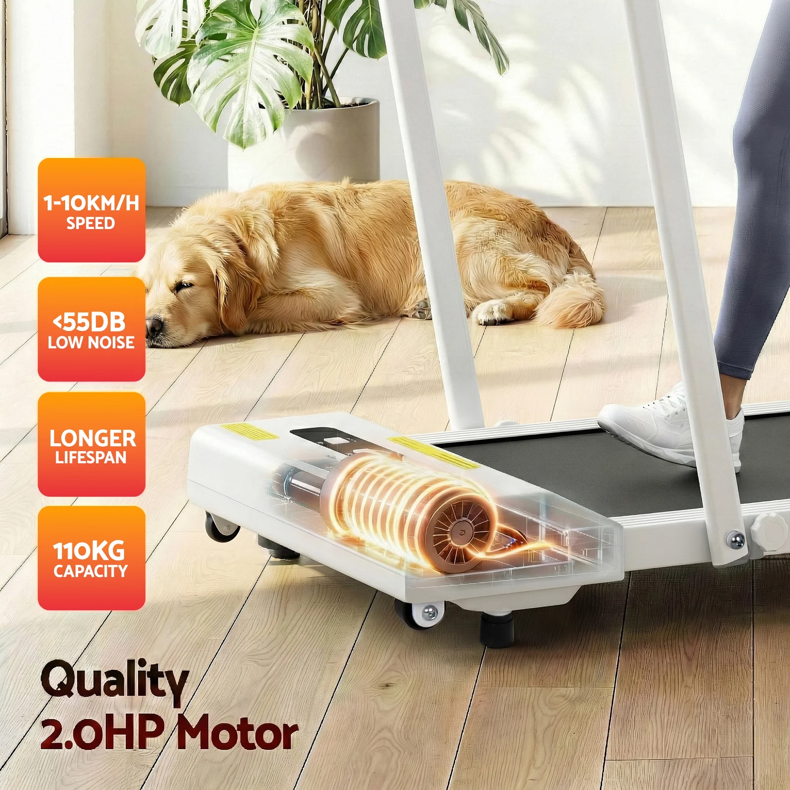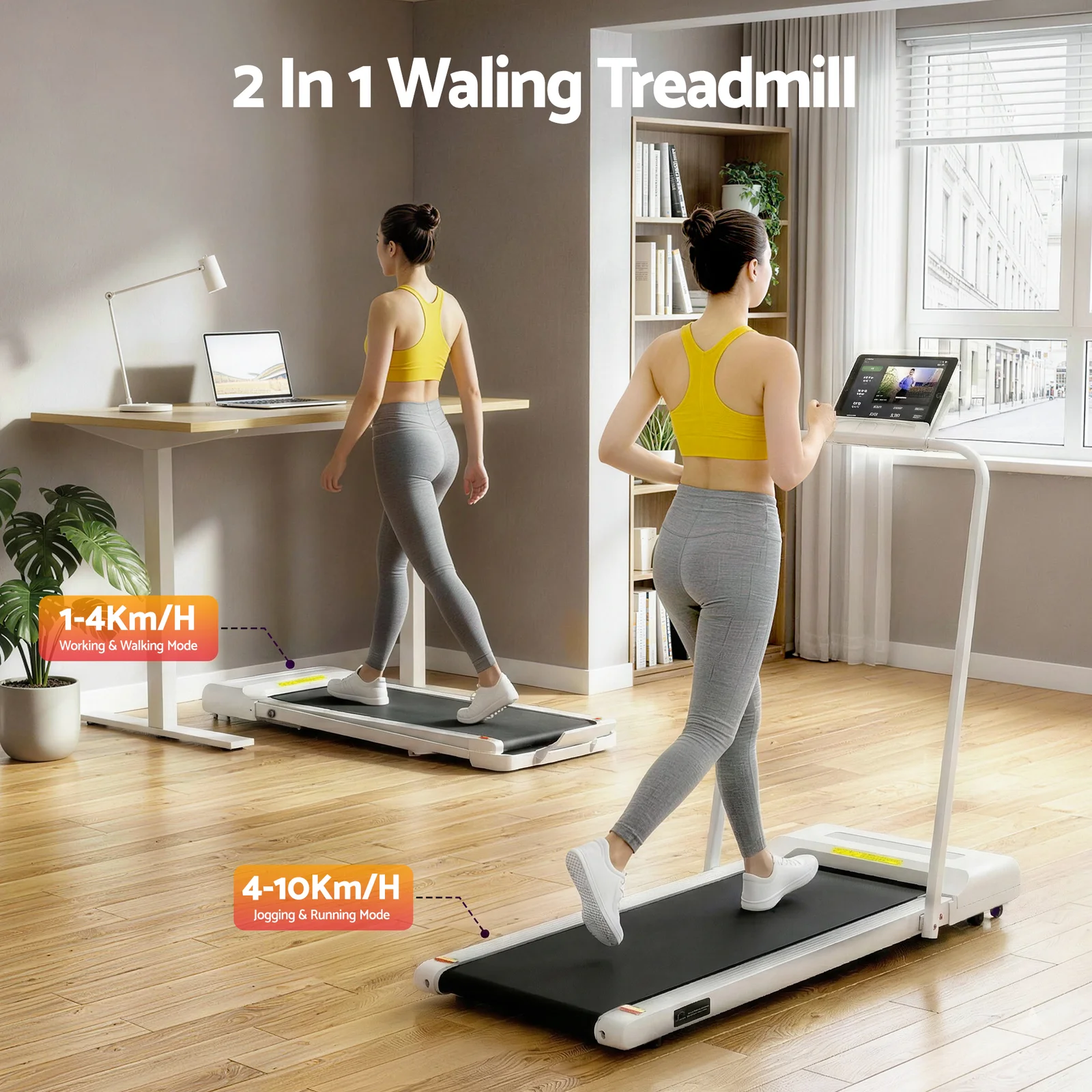 2HP 52cm Walking Pad Treadmill w/ Remote, Foldable Handrail, and Tablet Holder