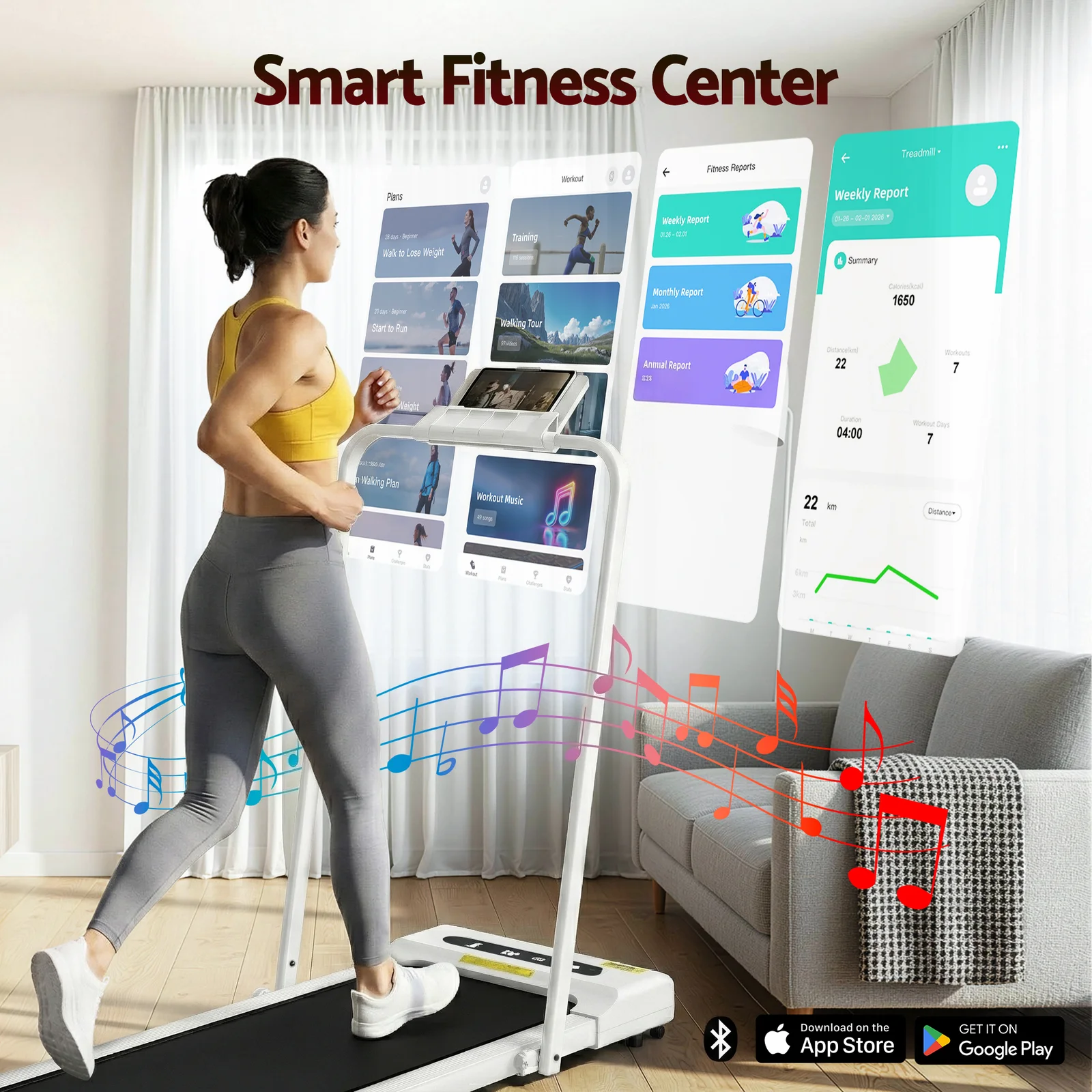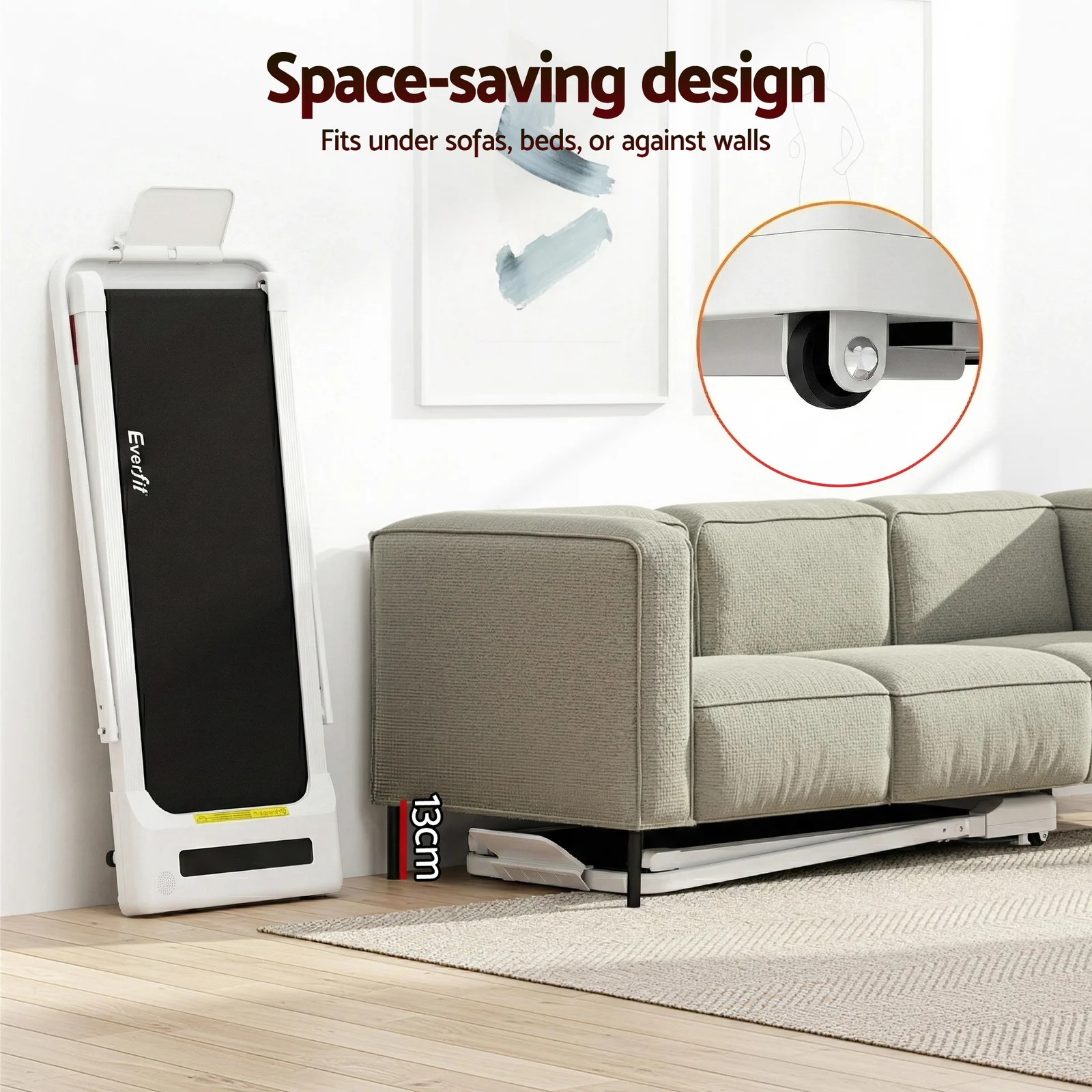 For a truly effective approach to weight loss and toning, our Everfit Walking Pad is your perfect companion. Compact and sturdy, the walking pad allows you to perform essential cardio exercises within the comfort of your home. It is foldable, easy to move, and comes ready to hit the ground running – no assembly required. Controlled by either the companion app or remote control, set up speeds of between 1km/h and 10km/h and monitor speed, time, distance and calories. Its powerful and energy-efficient motor produces smooth and seamless operation and the anti-slip belt phone holder makes your session a comfortable and controlled experience. The running belt uses an enhanced shock control system to help reduce the risk of joint injury, making the walking pad suitable for adults and seniors. When all the hard work is done, easily fold and store away the compact walking pad. Other great features include smooth wheels for easy mobility and Bluetooth speakers for entertainment while exercising. For health results that matter, our fitness walking pad is the one to run to.