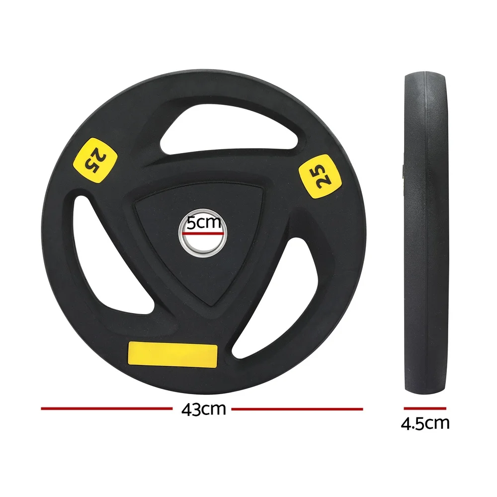 Enhance your weight-lifting routine with the Everfit Weight Plate, available in many sizes. The weight plates are constructed from heavy-duty cast iron and are designed to be sturdy and tough for all your exercise needs. The plates are covered in a tough rubber coating and feature a three-hole grip for easy handling. These weight plates are simple to use and compatible with most bars, making them versatile for use with dumbbells, barbells, or on their own. A handy weightlifting tool, they can be used for exercises for weight loss, strength training, endurance training and improved cardiovascular performance. Whether you are a beginner or an experienced lifter, Everfit Weight Plates provide a reliable and efficient way to achieve your fitness goals.