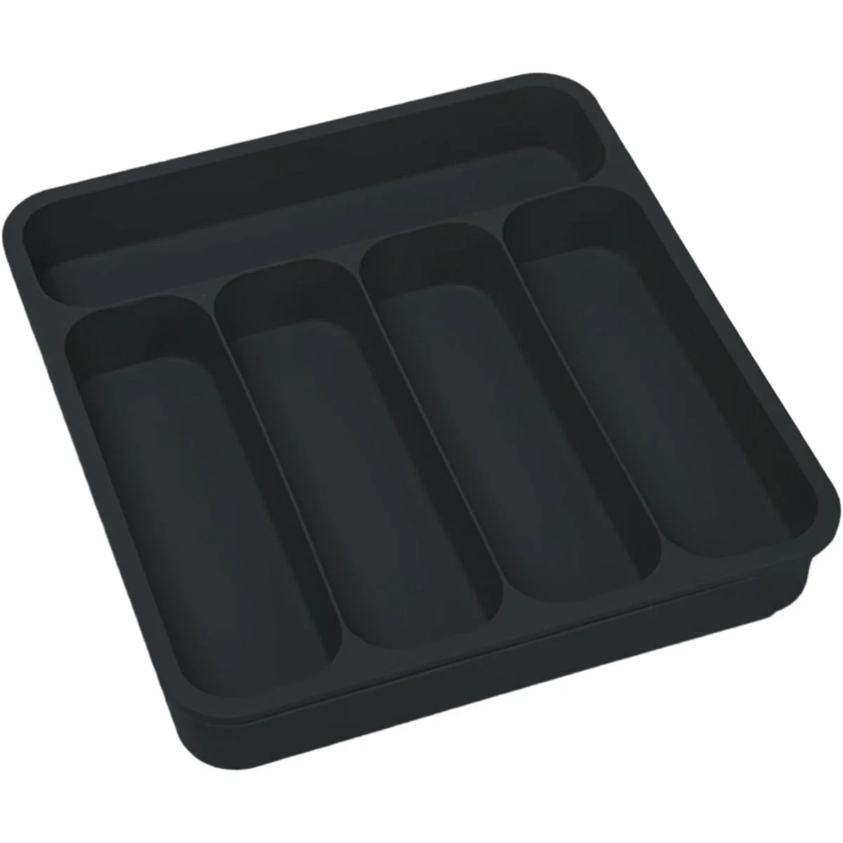 Maximise your kitchen drawer space with this adjustable cutlery organiser.Designed with five compartments and an expandable width, it keeps utensils neatly separated and easy to find.Made from durable, food-grade PP material, this tray provides a hygienic and practical storage solution for forks, knives, chopsticks, and more.Its sleek black and grey finish fits seamlessly into any modern kitchen setup.