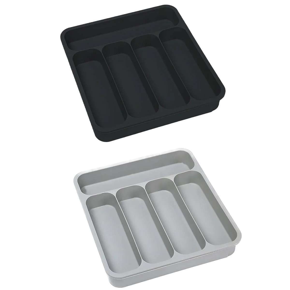 Maximise your kitchen drawer space with this adjustable cutlery organiser.Designed with five compartments and an expandable width, it keeps utensils neatly separated and easy to find.Made from durable, food-grade PP material, this tray provides a hygienic and practical storage solution for forks, knives, chopsticks, and more.Its sleek black and grey finish fits seamlessly into any modern kitchen setup.