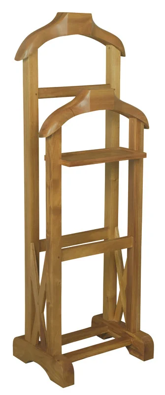 Elevate your daily routine with the Ezra Double Valet, a masterpiece that combines functionality with classic design. Made from solid mahogany timber, this valet stand is not only durable but also boasts a rich, natural finish that enhances the beauty of your interior décor. Its sturdy construction ensures it will be a staple in your home for years to come.The Ezra Double Valet features two elegantly curved hangers, providing ample space for your suits, jackets, and trousers, keeping them crisp and ready for wear. The thoughtful design includes additional storage shelves for your accessories, making it the perfect companion for your daily dressing rituals. With dimensions of 46.0 x 34.0 x 130.0 cm, it offers generous storage without taking up too much space.Indulge in the luxury of well-organized, wrinkle-free clothing and the charm of timeless design with the Ezra Double Valet. Let this exquisite piece of furniture bring elegance and convenience to your daily routine!
