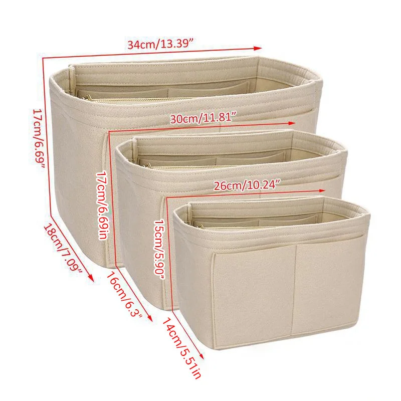 Keep your handbag neat and organized with this felt handbag organizer insert. Crafted from durable and lightweight felt material, it protects your bag’s interior while ensuring your essentials are easy to access. The structured design helps maintain your handbag’s shape, preventing sagging and clutter.