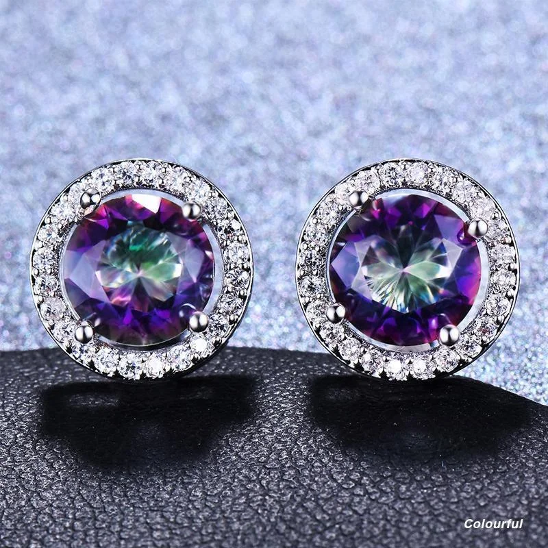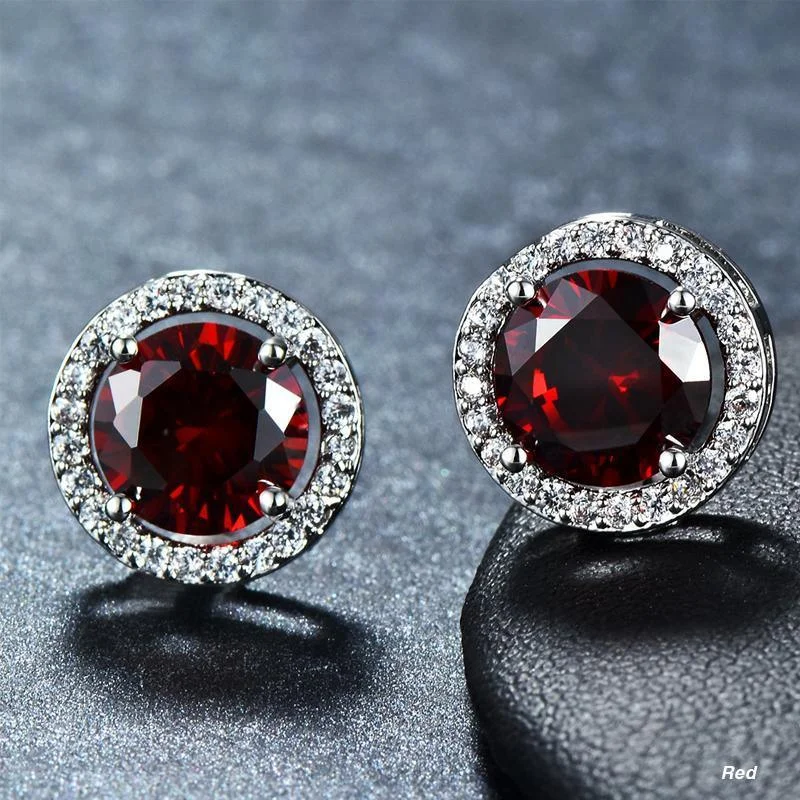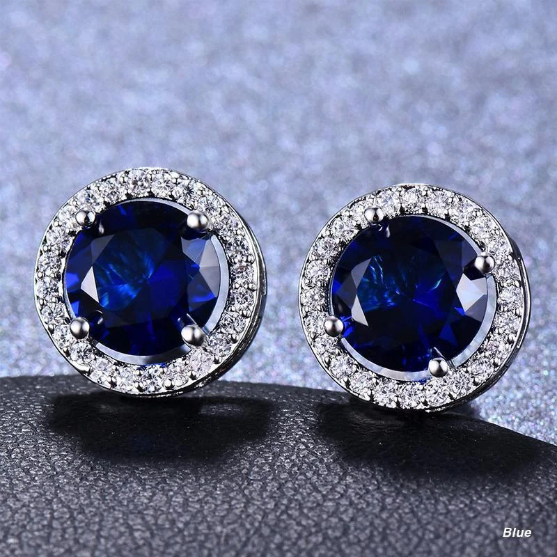 1 Pair of Round Zircon Full Diamond Stud Earrings