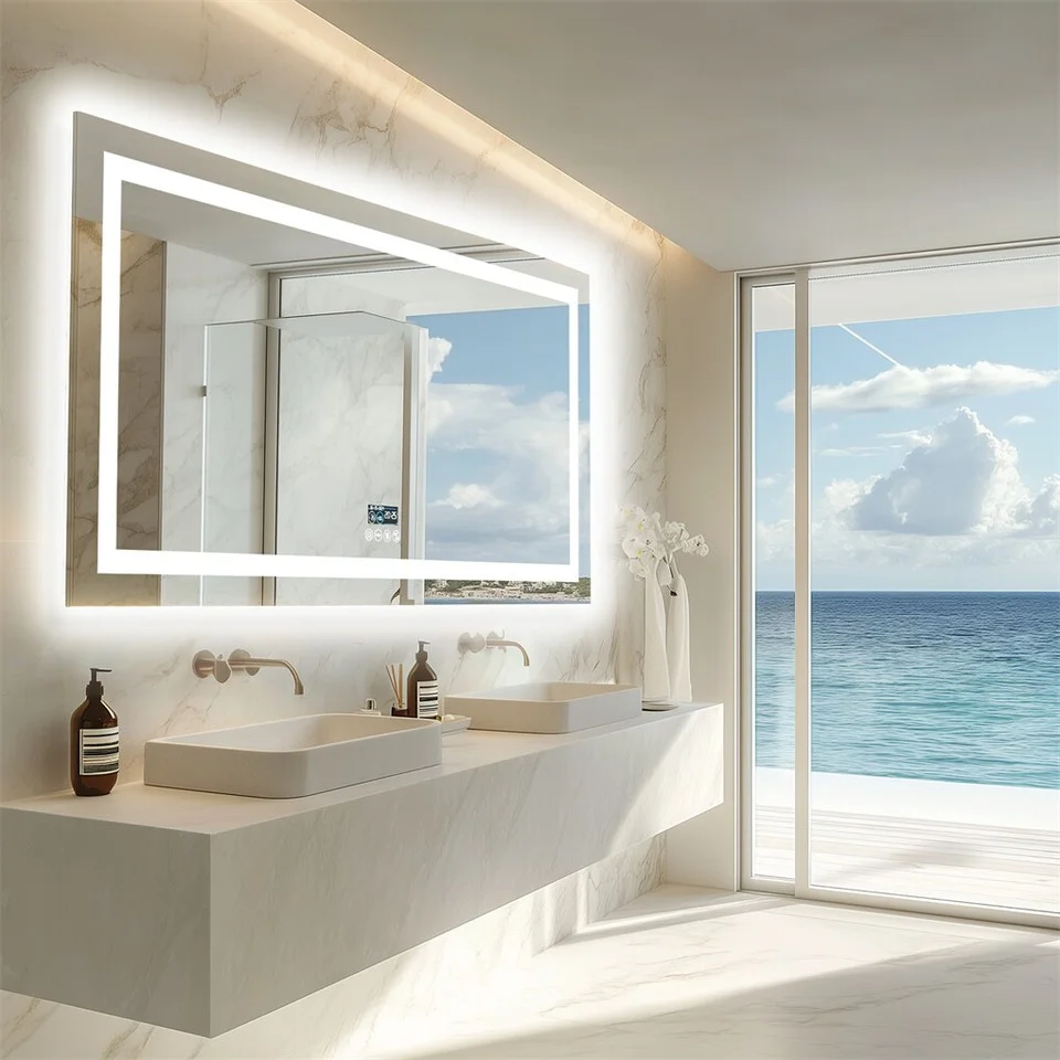 Professional Technology, After-sale Service bathroom mirror is constantly upgraded to meet customers expectations, we have our own factory that implement strict quality control measures ensure that each product meets high standards before reaching the customer, engineered with anodized aluminum frame, anti-rust, resistant to wear and damage, two options of installation, powered by a standard plug or hard wire for wall switch control, the mirror has cable entry on the backside, organizes your wire well, welcome to contact customers service to fit your problem, share with your feedback and suggestions