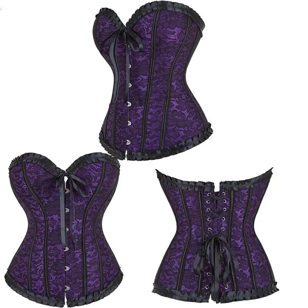 Steampunk Corselet With Zip & Buckle Women Gothic Fishbone Corset - Brown - M