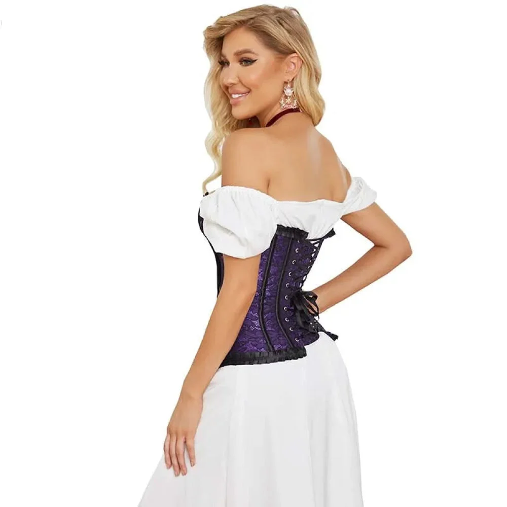 Vintage Floral Embroidered Corset Plus Size Lacing Tank Top - Khaki 785 - M