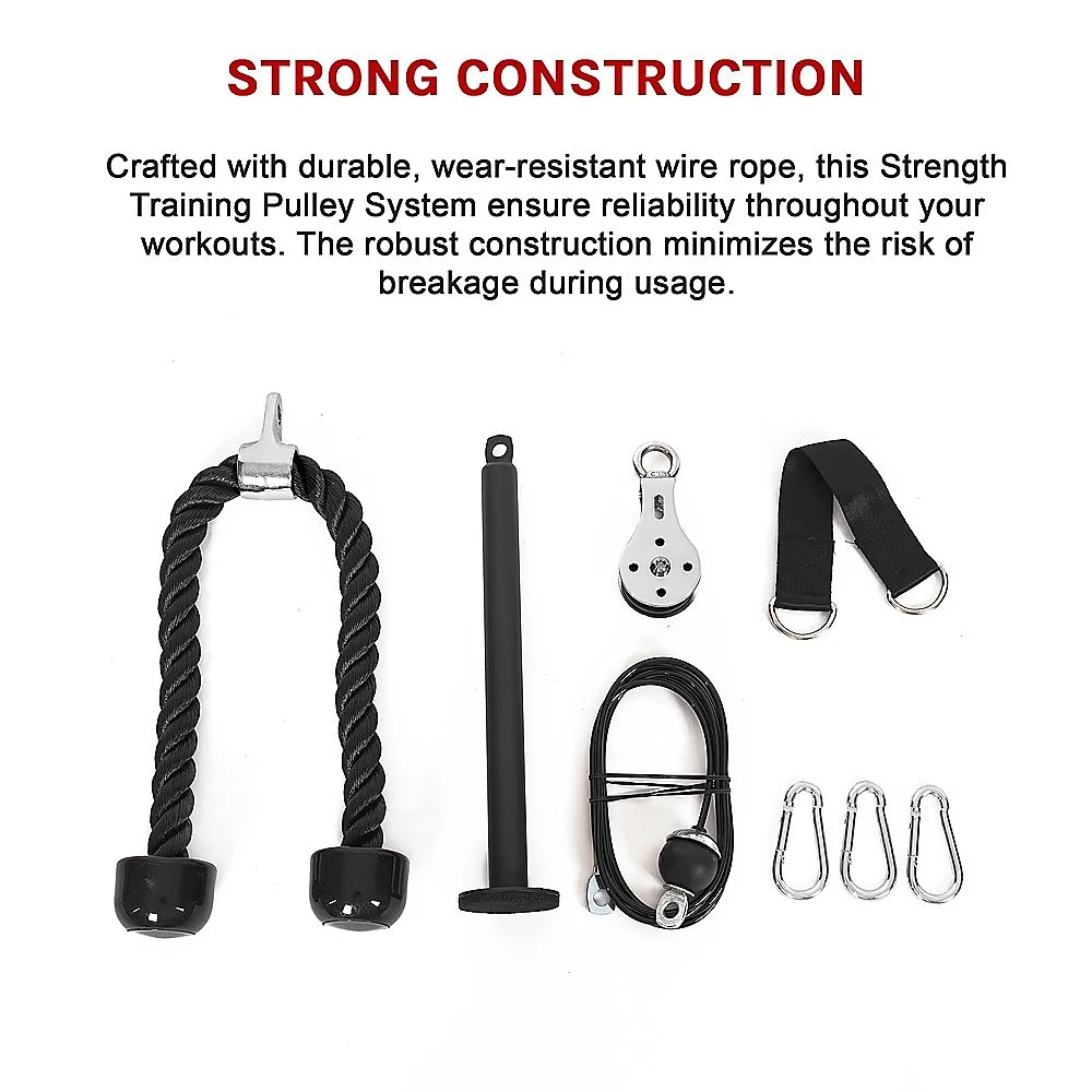 Crafted with durable, wear-resistant wire rope, this Strength Training Pulley System ensure reliability throughout your workouts. The robust construction minimizes the risk of breakage during usage.