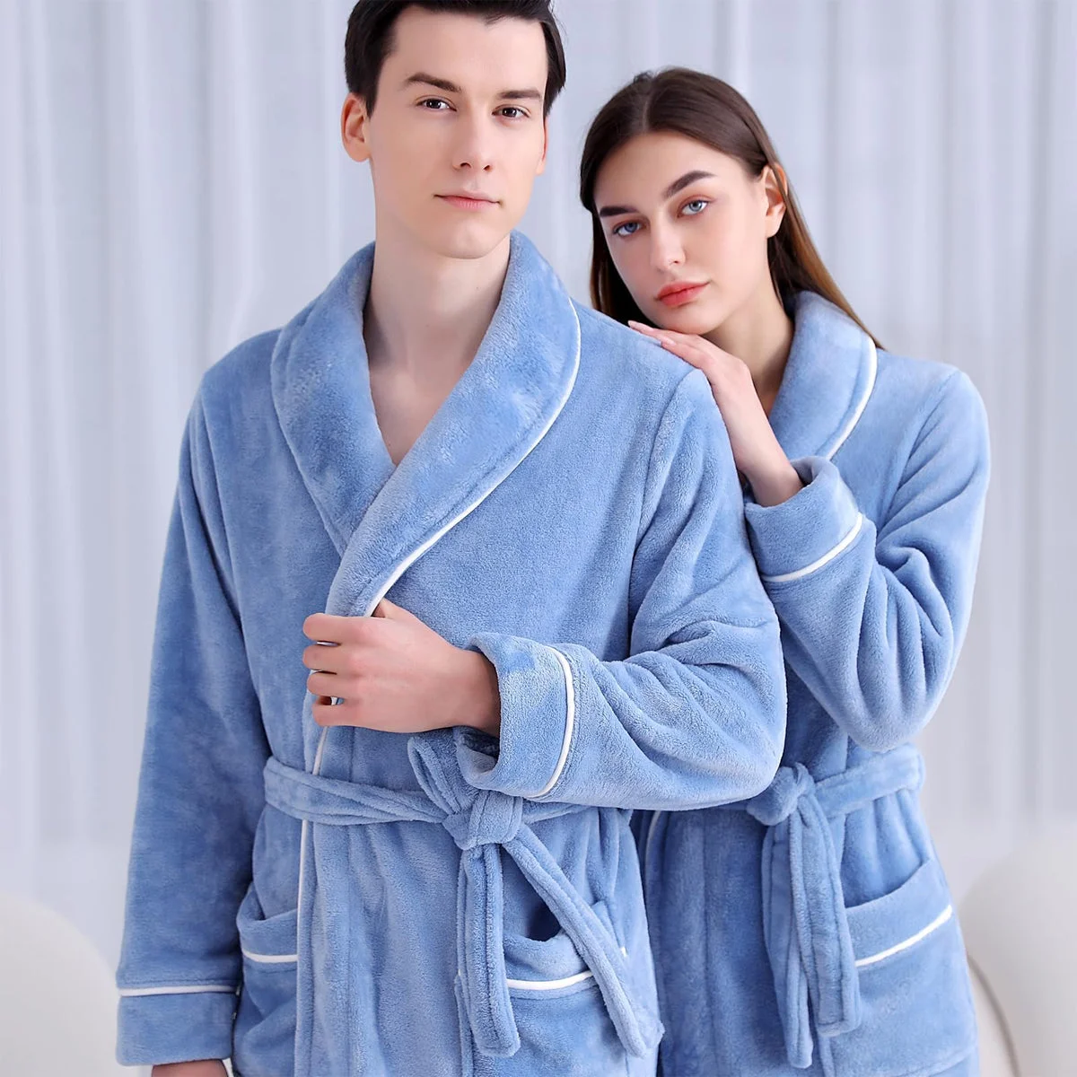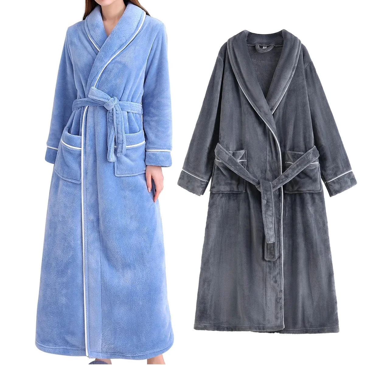 Stay cosy and relaxed in this plush flannel bathrobe designed for both men and women. Crafted from soft coral velvet, it offers a warm and breathable experience ideal for autumn and winter seasons. Featuring a stylish lapel collar, waist tie, and large pockets, this robe is perfect for lounging at home, hotels, or spa visits. Machine-washable and skin-friendly, it’s a must-have for ultimate comfort and warmth.