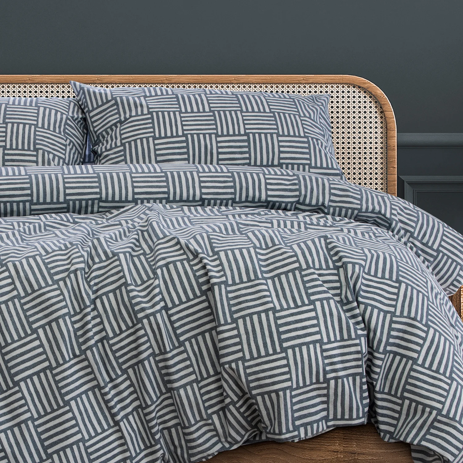 Ardor Boudoir introduces Fletcher Quilt Cover Set in a tonal Faded Indigo. Fletcher displays an organic thatched geo pattern adding soft masculine touch to your bedroom style.