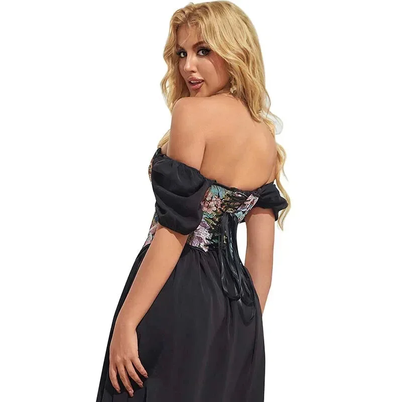 Rose Print Denim Jeans Corset Black Plus Size Burlesque Renaissance Vintage - L