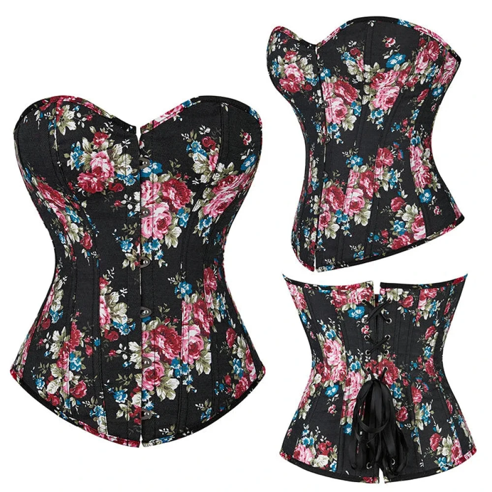 Green Bustier Corset Top With Thong Front 6 Busk Back Lace Plus Size Alluring Lingerie For Busty Women - Red - Xxl