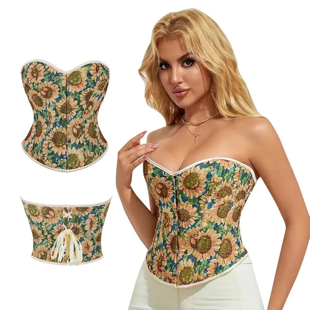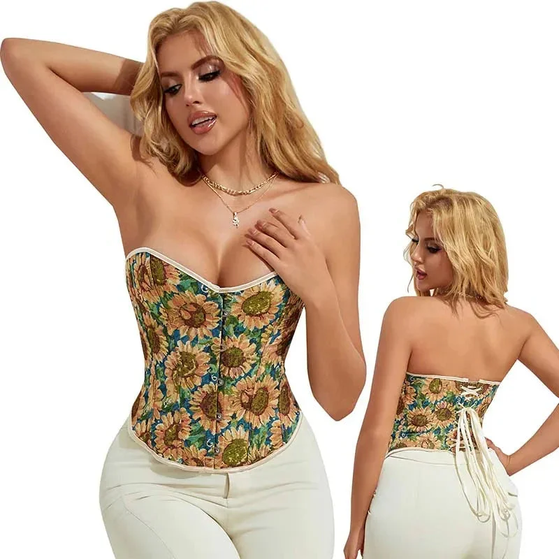 Vintage Lace Overlay Corset With Bowknot Detail Lace Up Bone Pleated Mesh Women - 6Xl