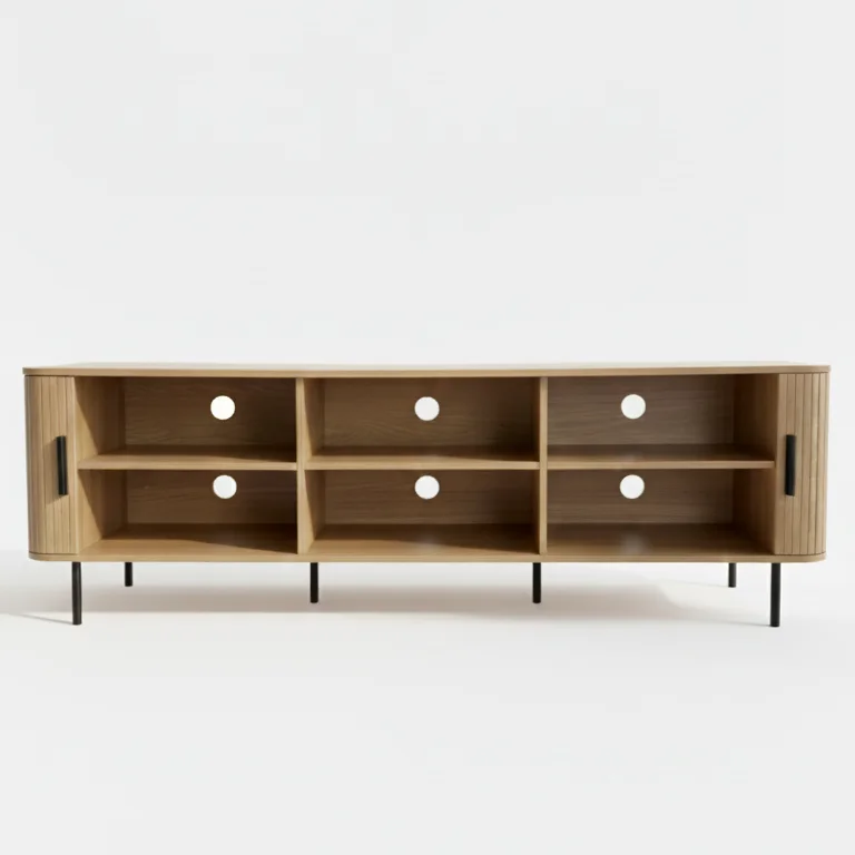 The Florence Entertainment Unit brings together smart design and understated luxury. Featuring smooth-gliding tambour doors, it maximises your storage without demanding extra floor space perfect for rooms where every inch counts. The beautifully fluted surfaces add visual interest and depth, creating an impression of quality craftsmanship.