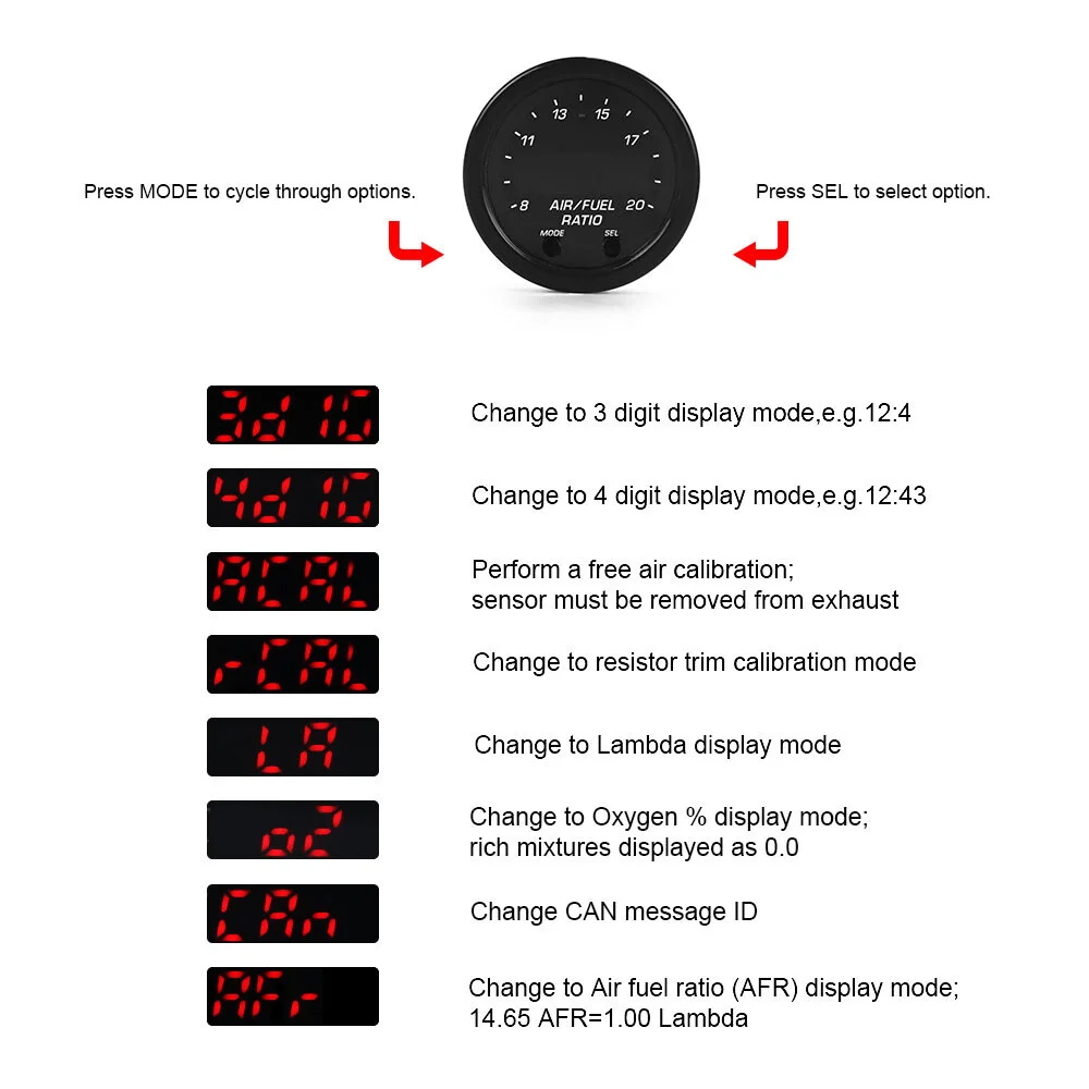 TYPE: Wideband UEGO Air/Fuel Ratio Sensor Controller Gauges