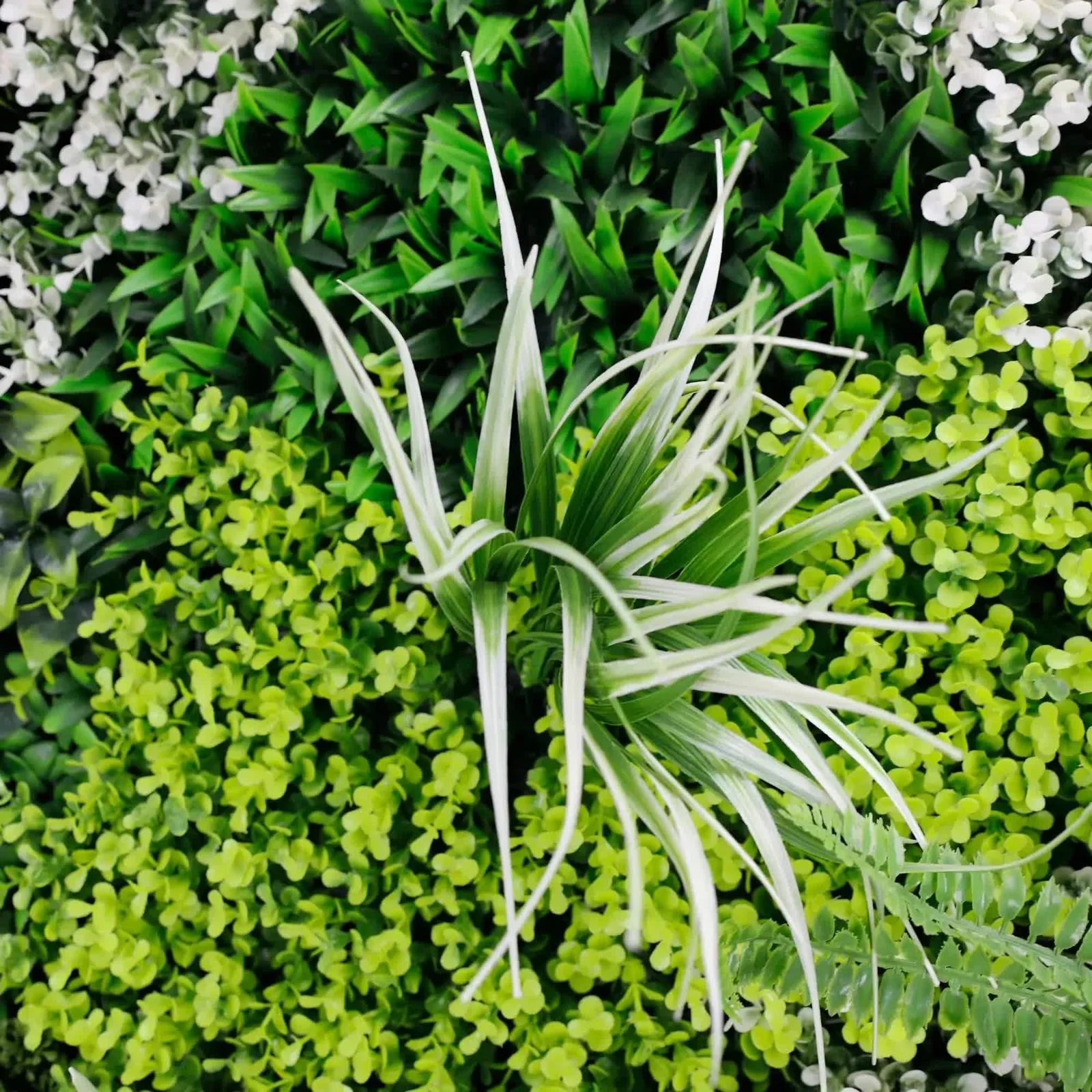 Lifelike Design: A rich variety of faux plants in vivid green and white shades for a realistic and stylish look.