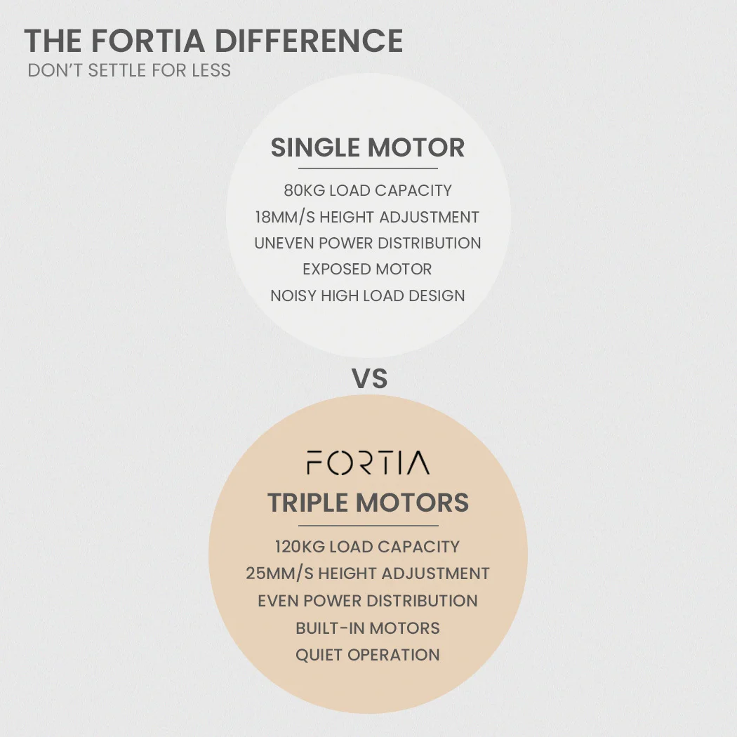 The FORTIA electric corner desk boasts a triple motor system. This translates to fast, smooth and quiet operation, with the added benefit of superior durability and up to 120kg capacity. Unlike other models on the market, the motors are neatly and safely enclosed into the frame.