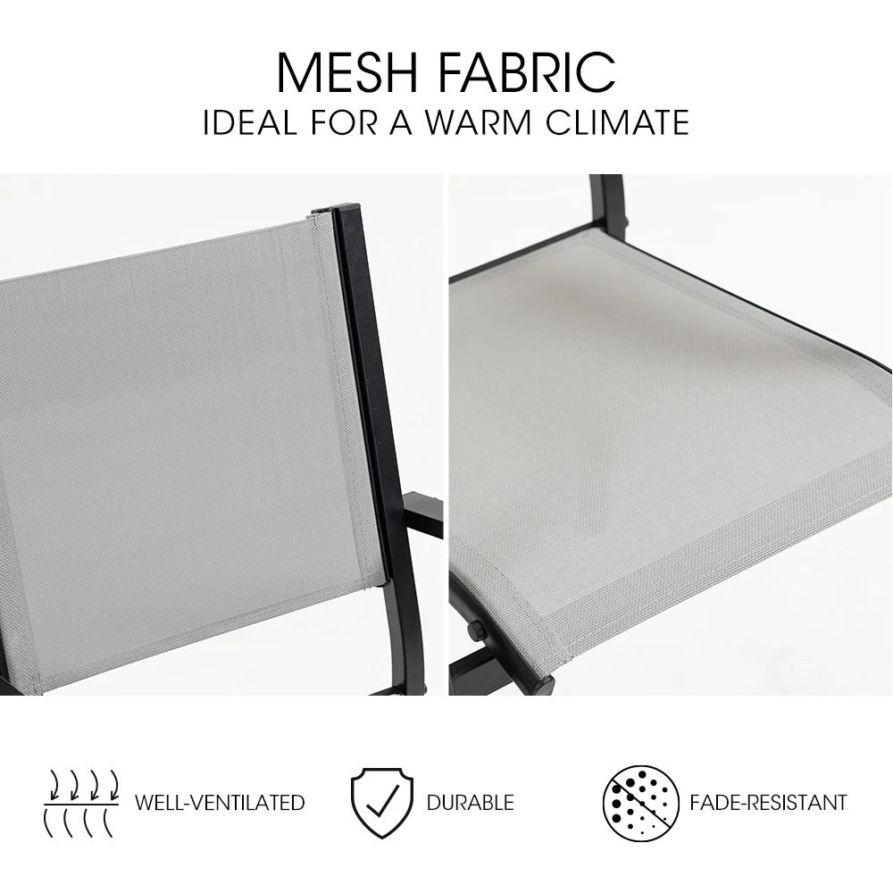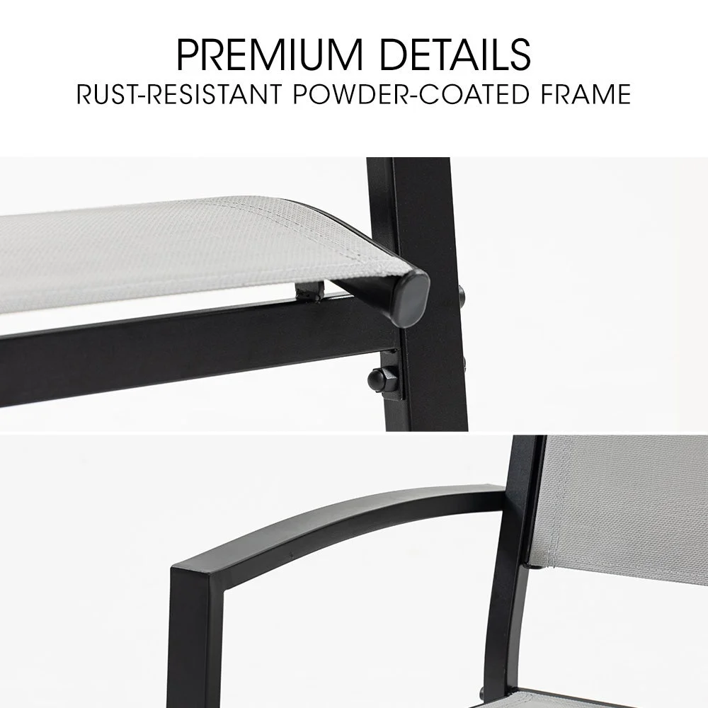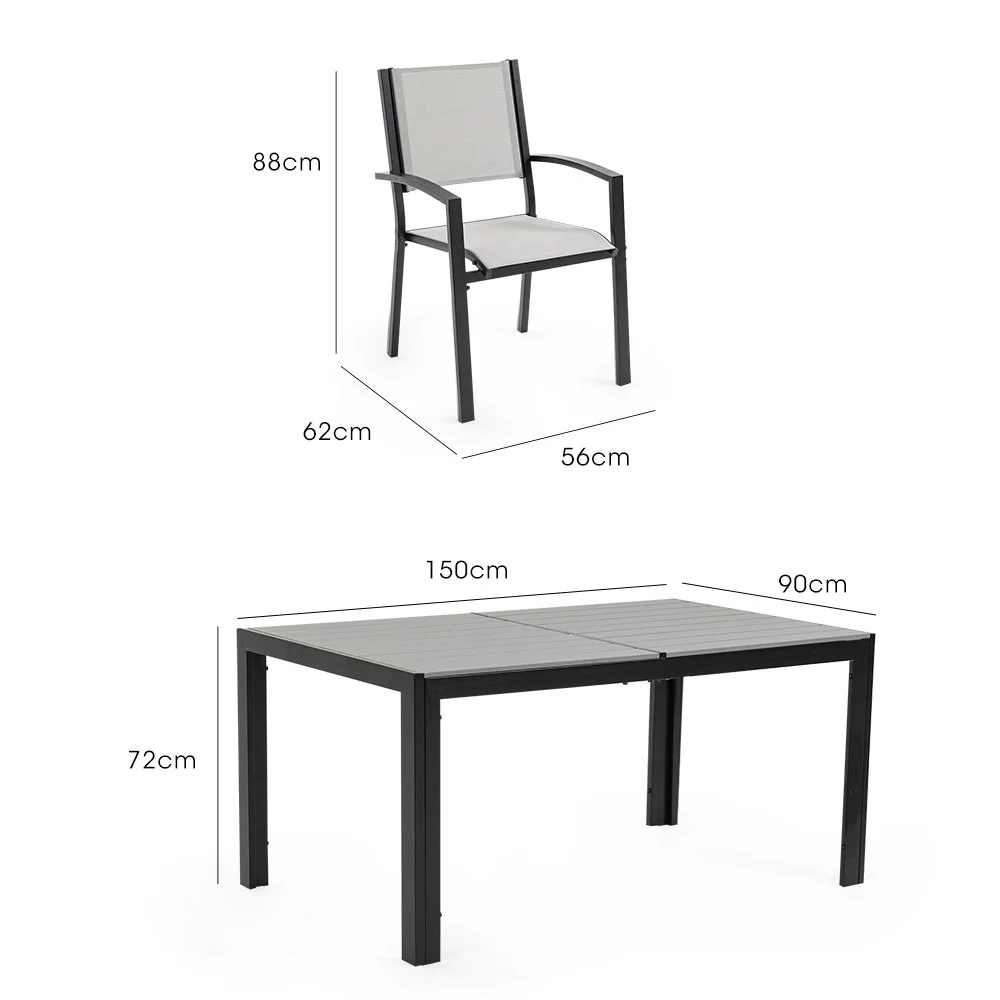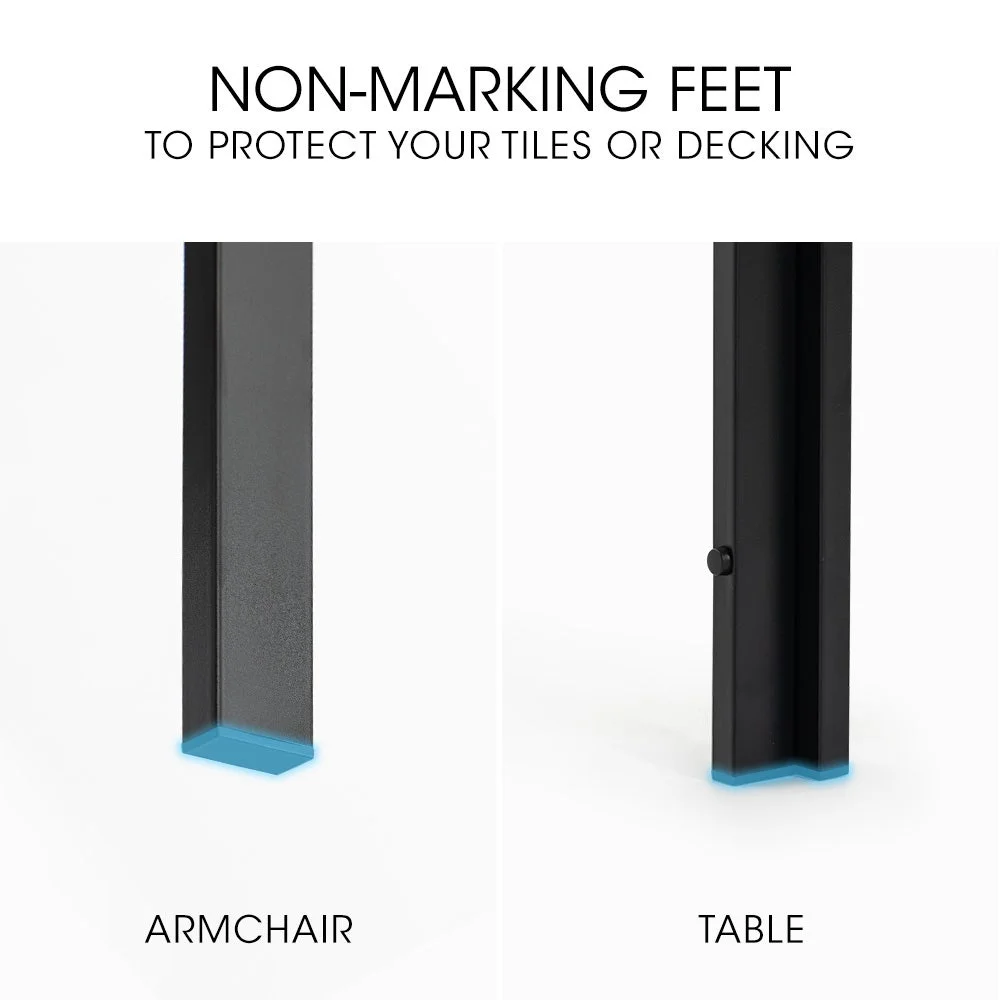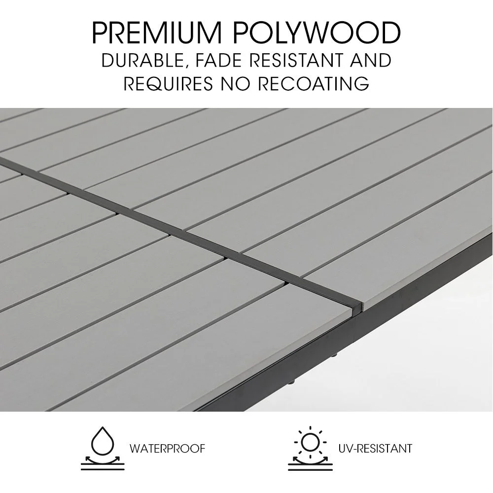 Designed for warm climates, the set features breathable mesh fabric and a premium polywood tabletop, ensuring durability, fade resistance, and without the need for any upkeep. The Fortia 7-Piece Setting has a strong stylish, rust-resistant powder-coated frame and non-marking feet to protect surfaces like tiles or decking.