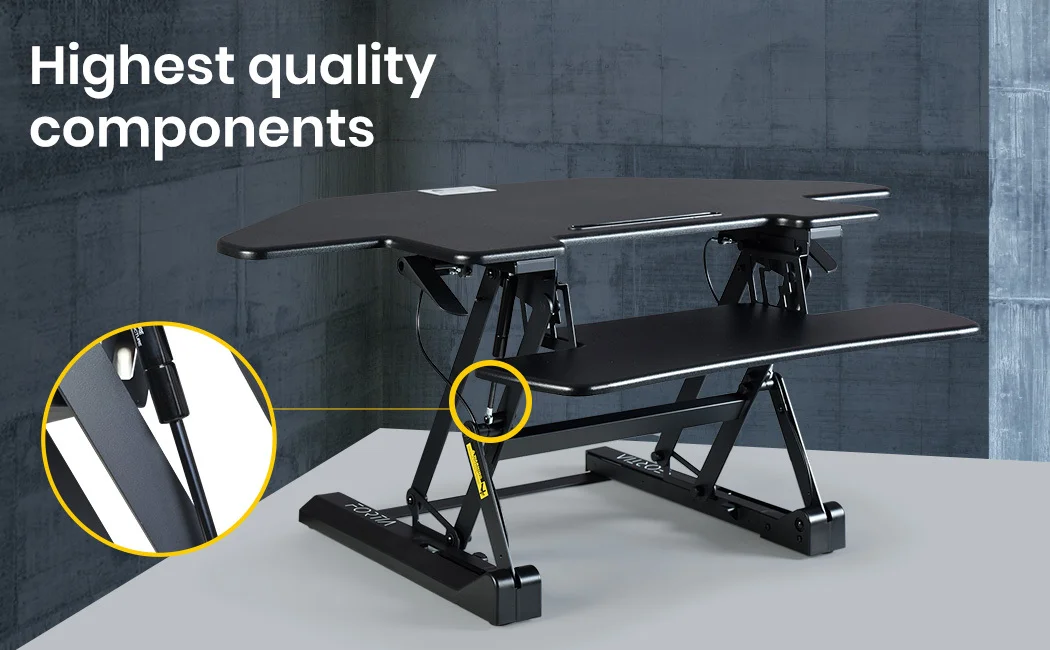 The FORTIA Corner Shaped Desk Riser is an ergonomically designed solution that enables you to set the perfect height for standing during work or study. With exceptional quality design and build quality, this desk riser is suitable for both home and corporate offices. You can look forward to enhanced productivity, as well as the reduction of any back ailments as you improve posture and core strength.
