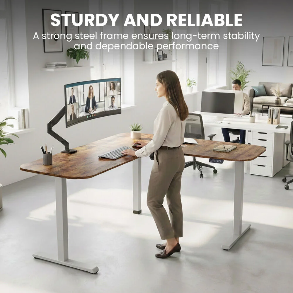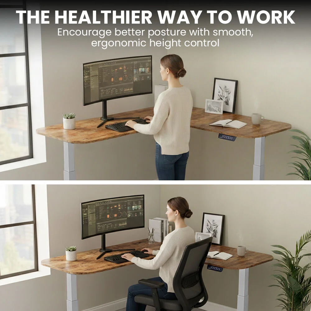 The FORTIA Sit-To-Stand Motorised Corner Desk transforms your workspace and is designed for Australian homes and offices. This motorised desk boosts productivity and comfort while allowing you to work in the position that suits you. Whether you are working, studying, or managing a busy household, you get smooth height adjustment at the touch of a button.
