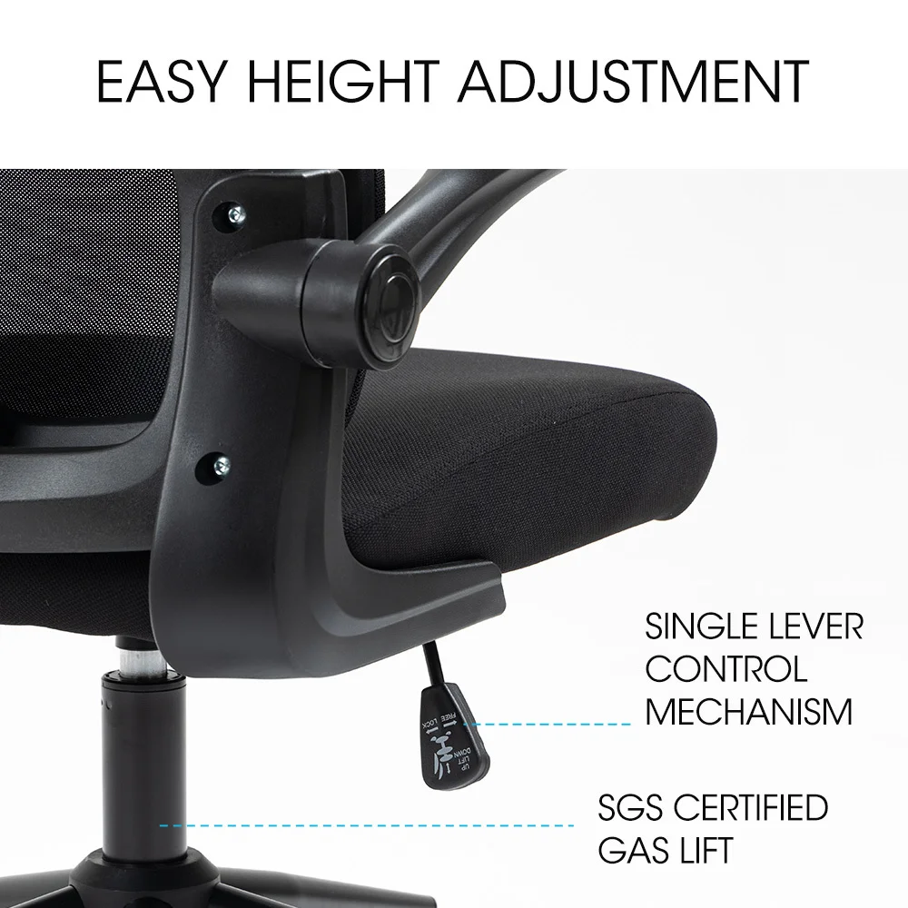 Swing up armrests ensure that you can easily fit under any desk. You can easily recline to 105° so you can relax whenever you need to. The SGS certified gas lift ensures smooth height adjustments every time, while the nylon base adds extra stability and durability – all with a weight capacity of 120kg!