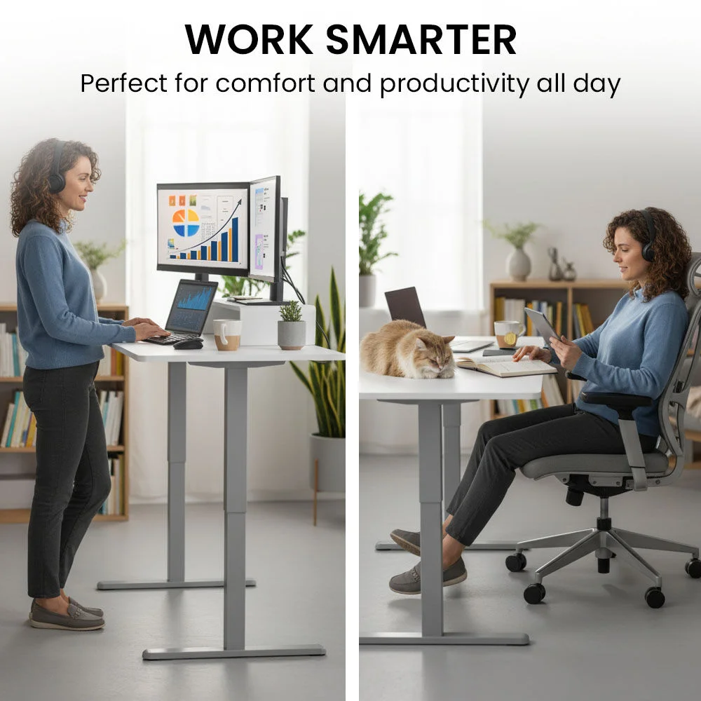 With whisper-quiet electric lifting from 72cm to 118cm and a sturdy frame capable of supporting up to 40kg, you'll enjoy reliable performance while keeping your space clutter-free and efficient. Switching between sitting and standing helps combat fatigue and reduces the health risks associated with long periods of sitting, keeping you energised and focused throughout the day.