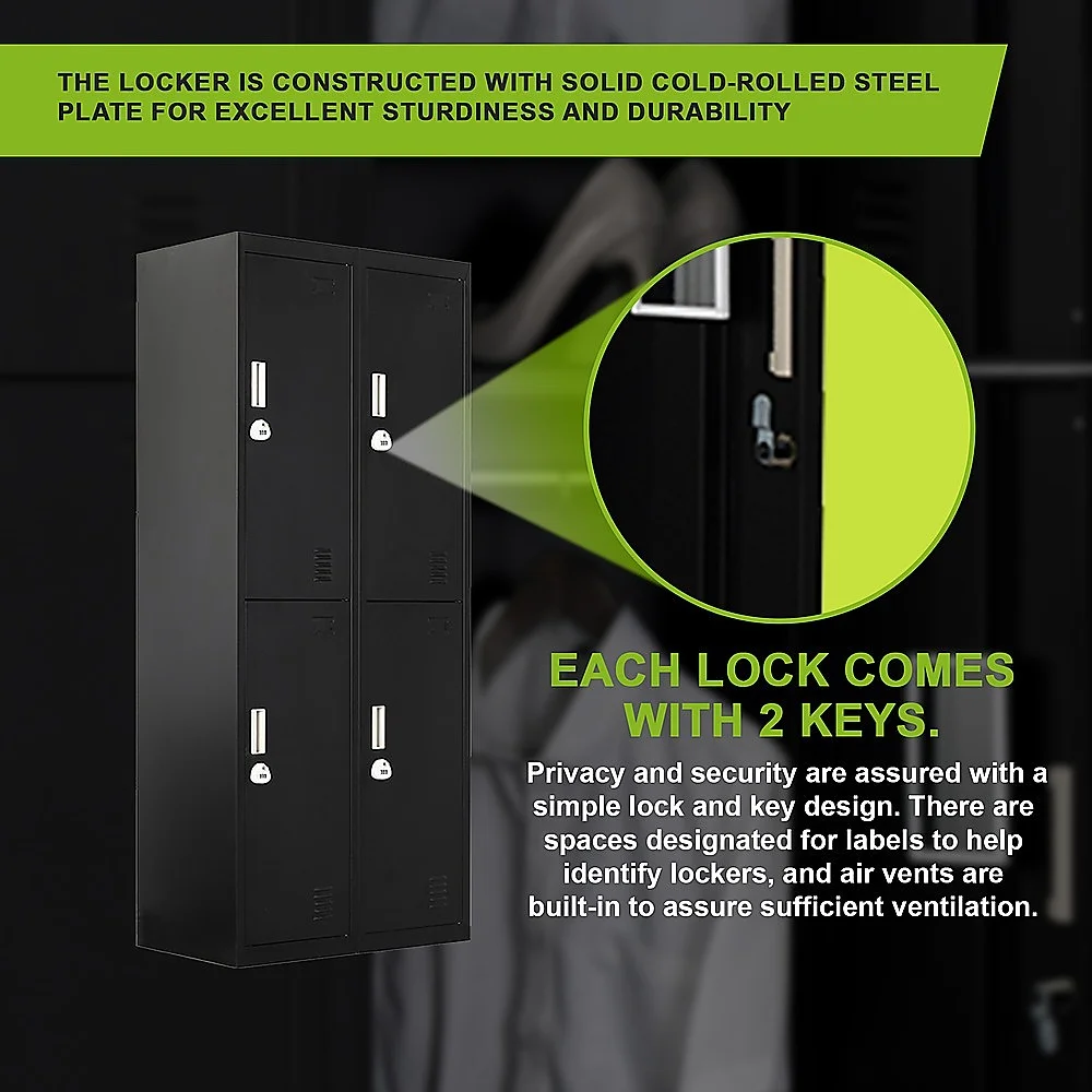 4-Door Vertical Locker for Office Gym Shed School Home Storage