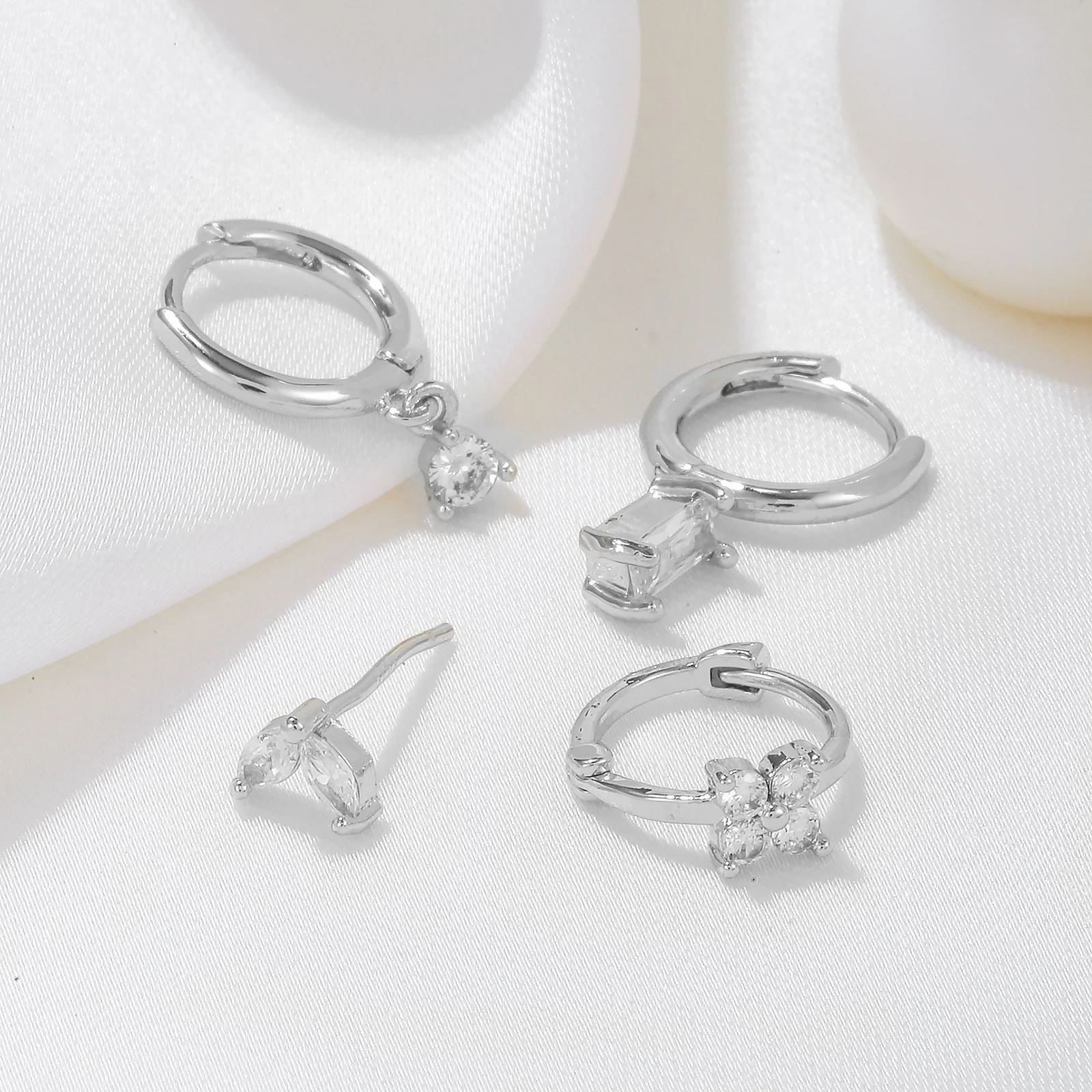 Effortlessly achieve the trendy, layered earring look with this beautifully coordinated set of delicate earrings. Designed for those with multiple piercings, this collection combines sparkling huggie hoops and elegant studs, allowing you to mix and match for a style that is uniquely yours. It's the perfect way to add a touch of sophisticated sparkle to any outfit, day or night.