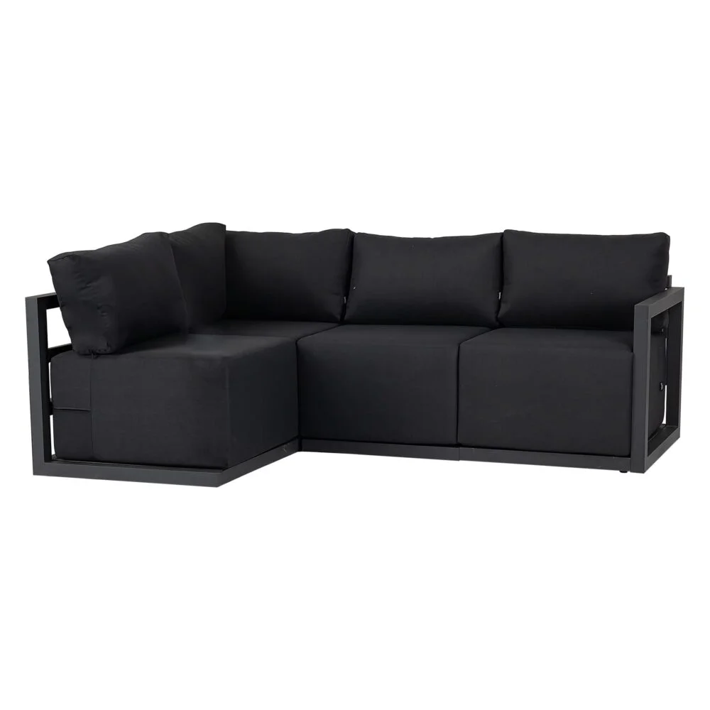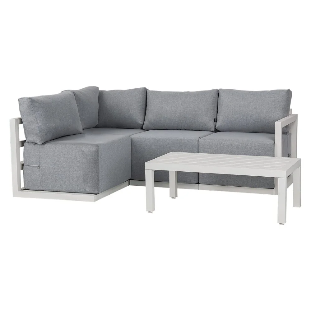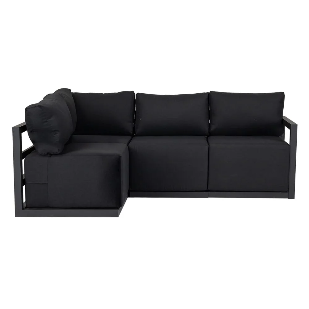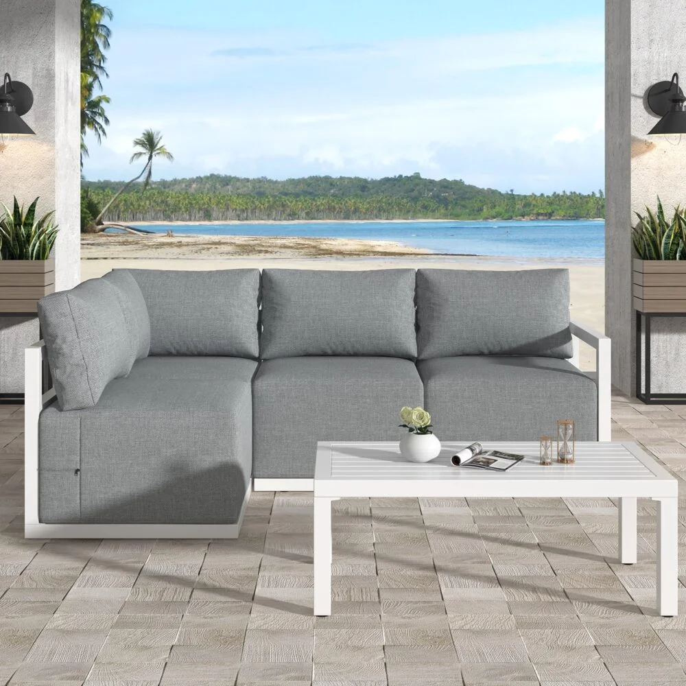 It includes two armless sofas, a corner sofa, a left armrest sofa, and a coffee table. The pure aluminum frame is paired with rust proof powder,It showcases a sense of high-end fashion and also easy to maintain. The interior of the sofa cushion is a 40cm thick high-density foam, soft and comfortable, and suitable for all seasons.
