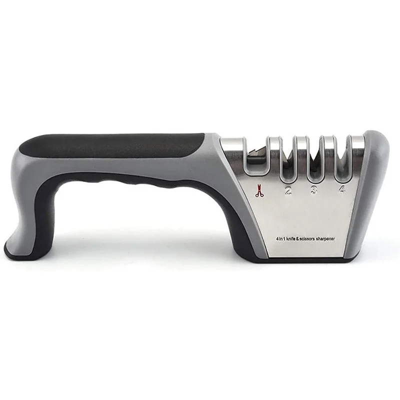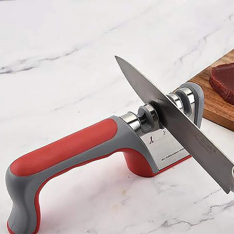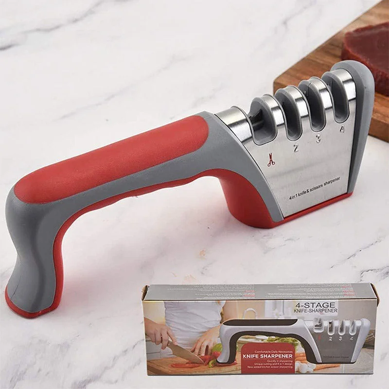 Restore your kitchen knives quickly and precisely with this four-stage multi-functional sharpener. Designed for straight-edged blades, it features a compact body and ergonomic non-slip rubber handle for comfortable and safe use. Each sharpening stage—coarse, medium, fine, and ultra-fine—ensures your knife edges are honed to perfection. Ideal for everyday kitchen tasks, this tool is easy to store and maintain, keeping your knives sharp and ready for action.