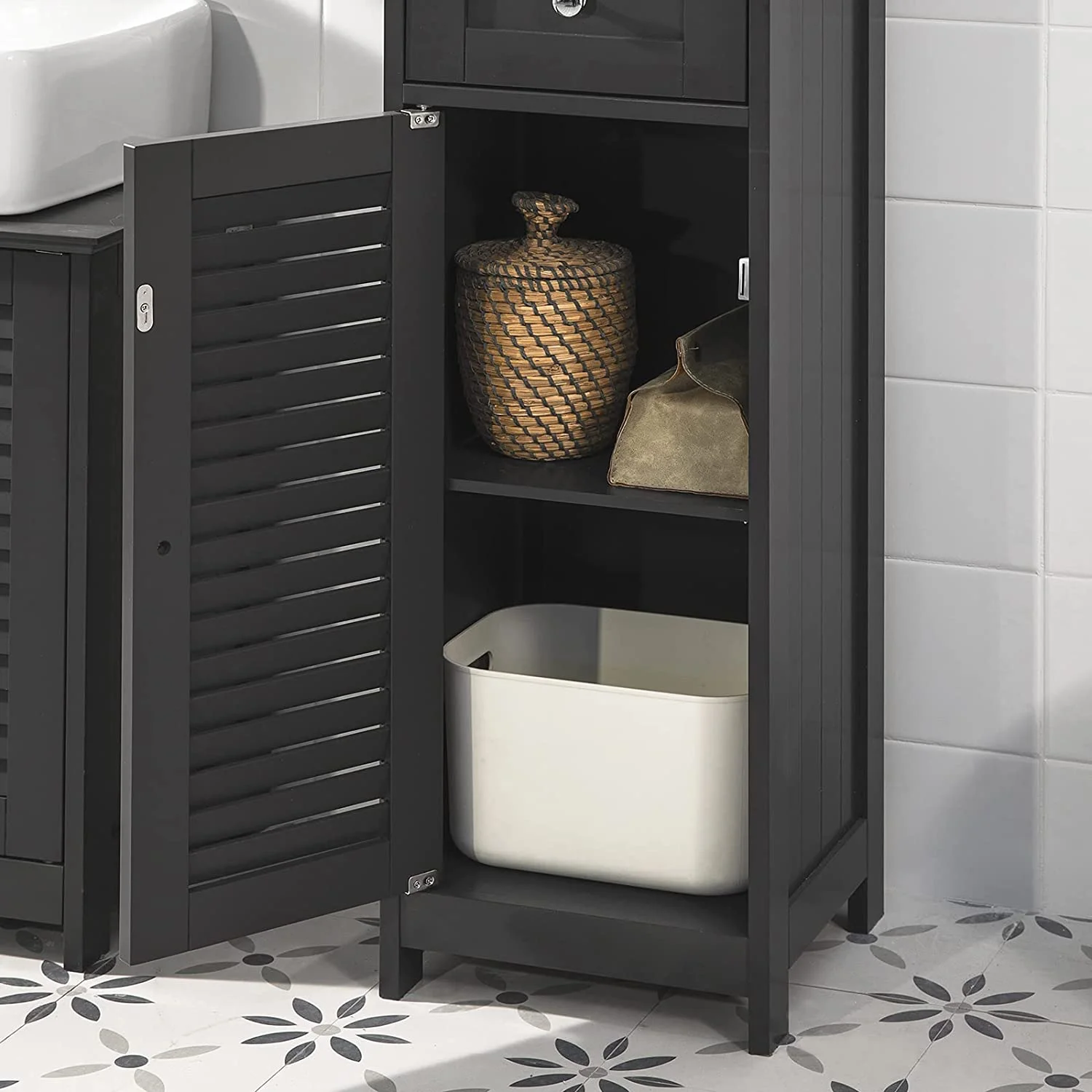 Freestanding Tall Bathroom Cabinet 170 x 32 x 30 cm (Black)