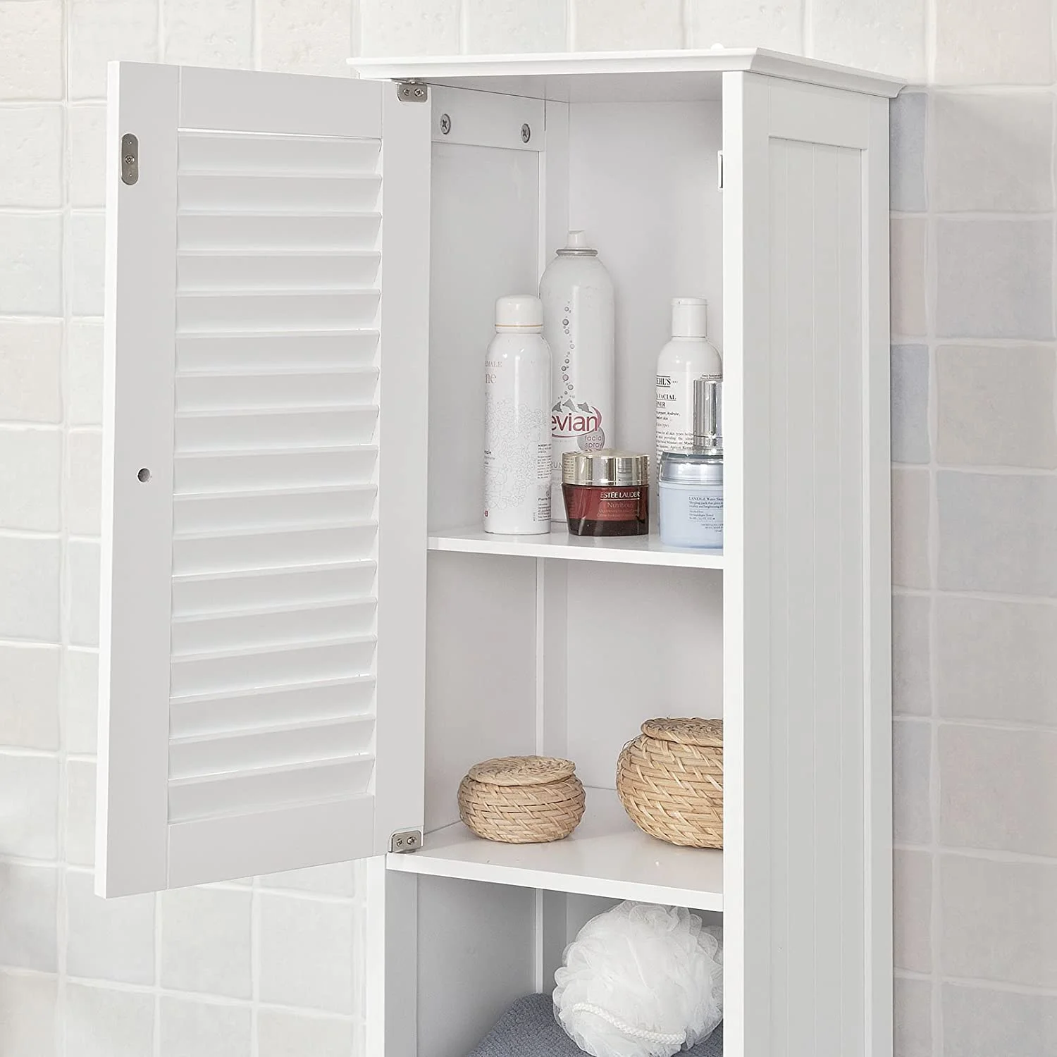 It has 2 shutter doors, with internal adjustable shelves and 1 drawer to provide enough storage space for all your bathroom essentials.