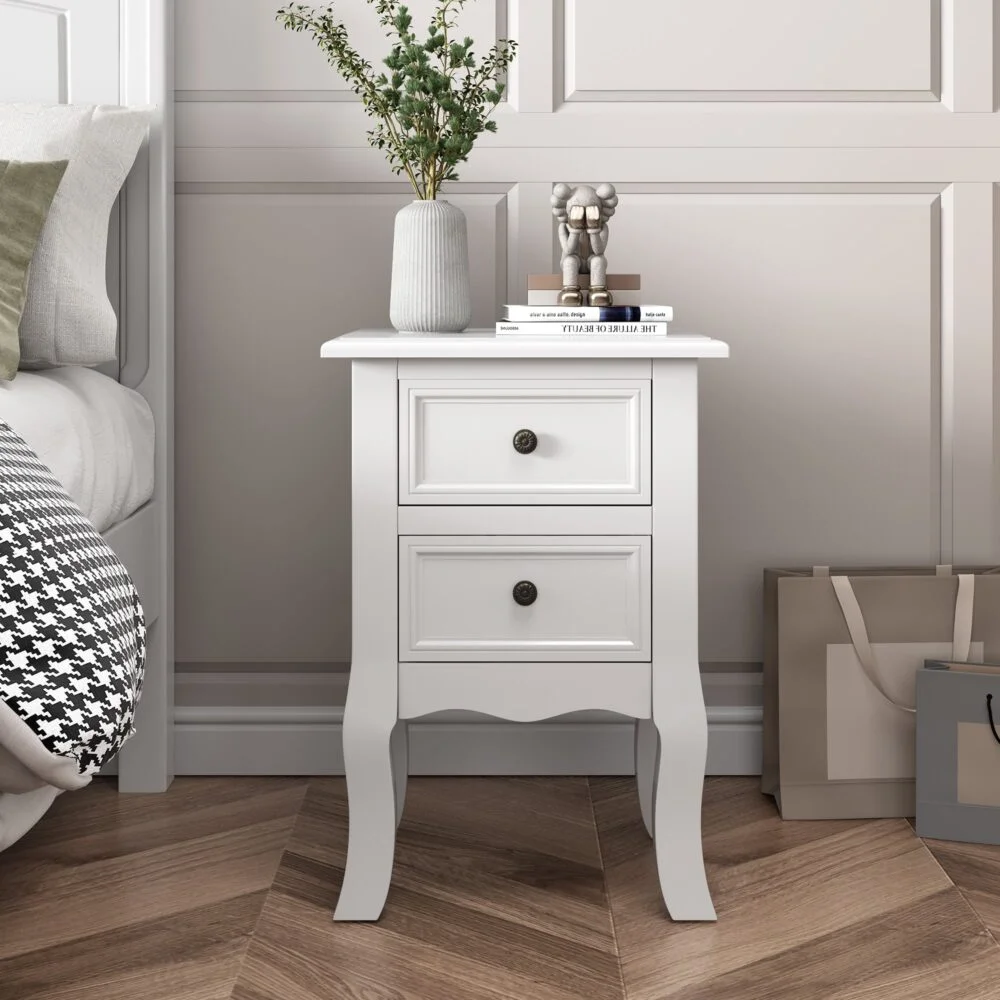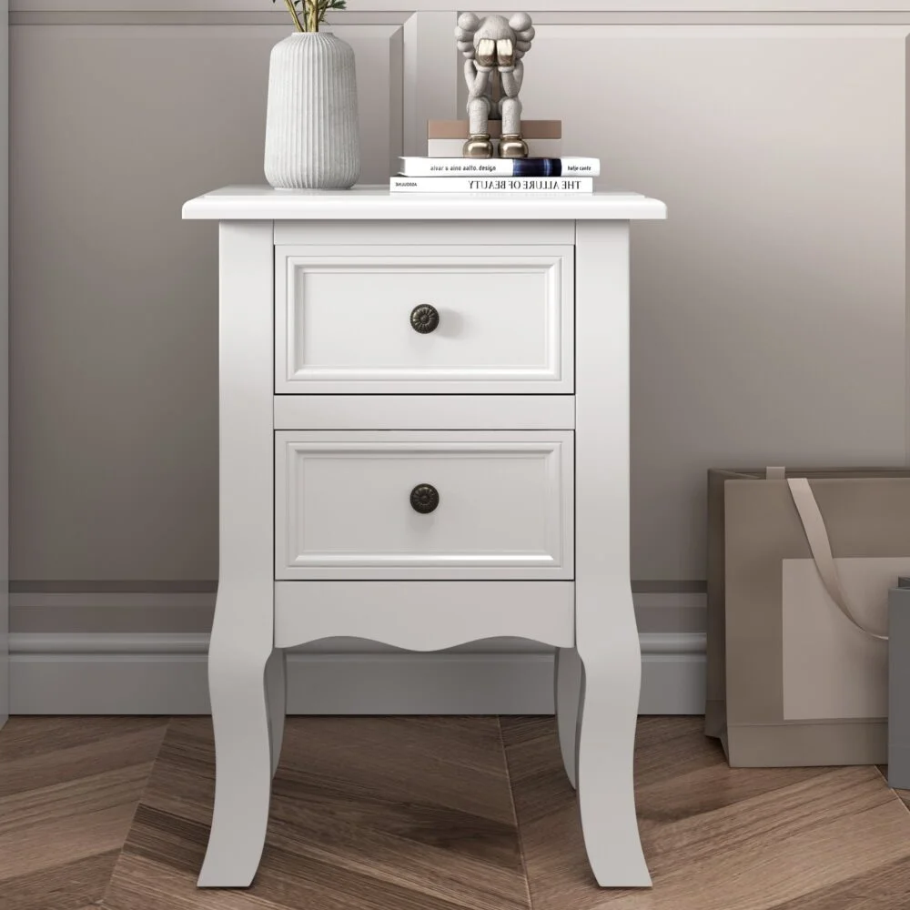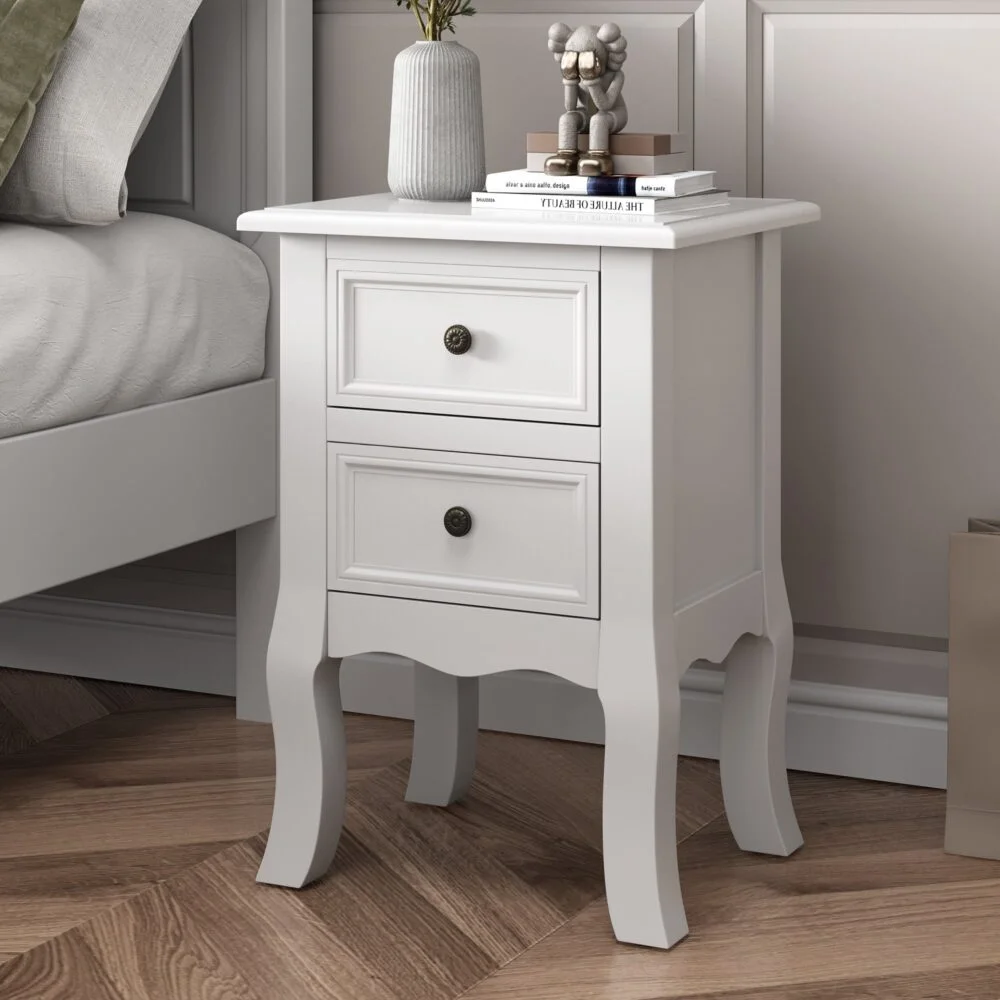 A beautiful white bedside table perfect for bedrooms with limited space.