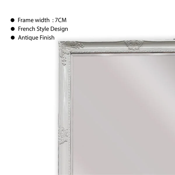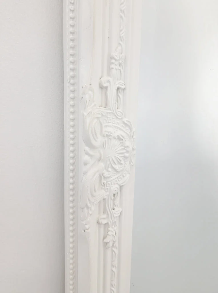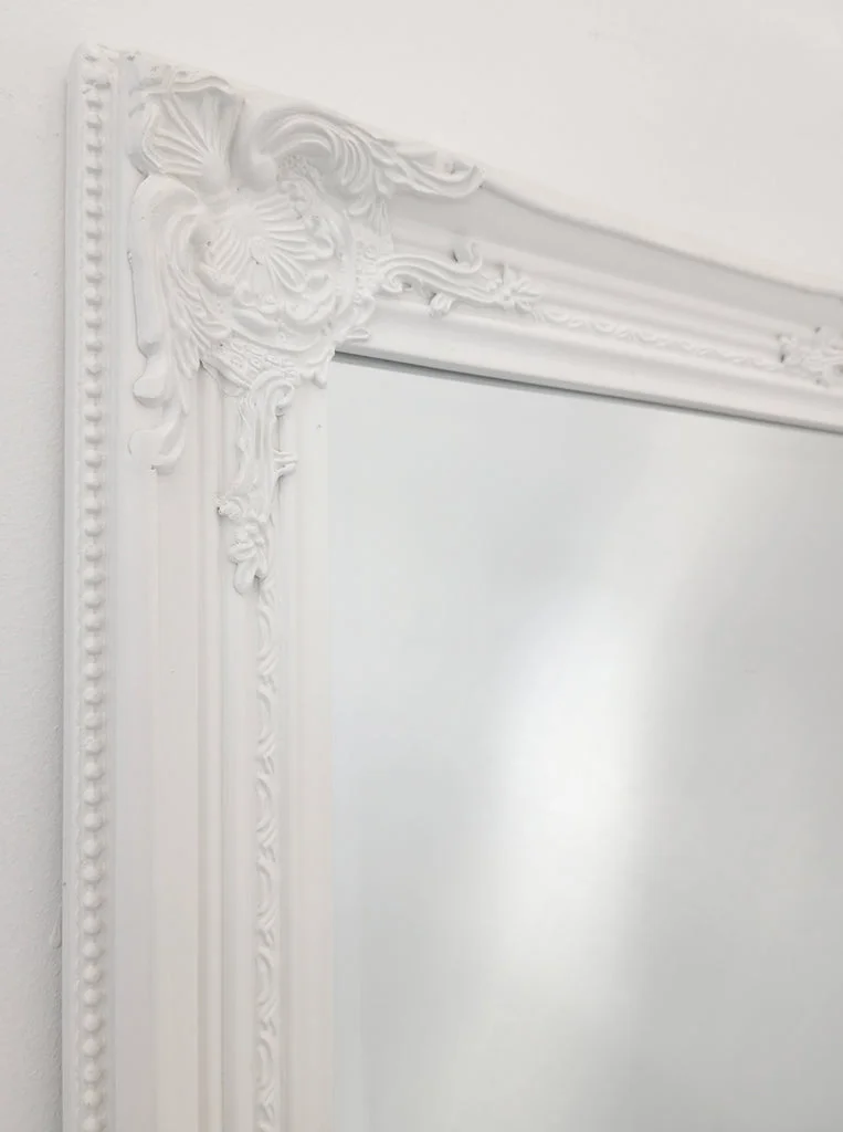 The French Provincial Ornate Mirror in White - Medium measuring 70cm x 170cm is a beautiful and elegant addition to any home decor. It features an intricate and ornate design with a white finish that creates a stunning vintage look.