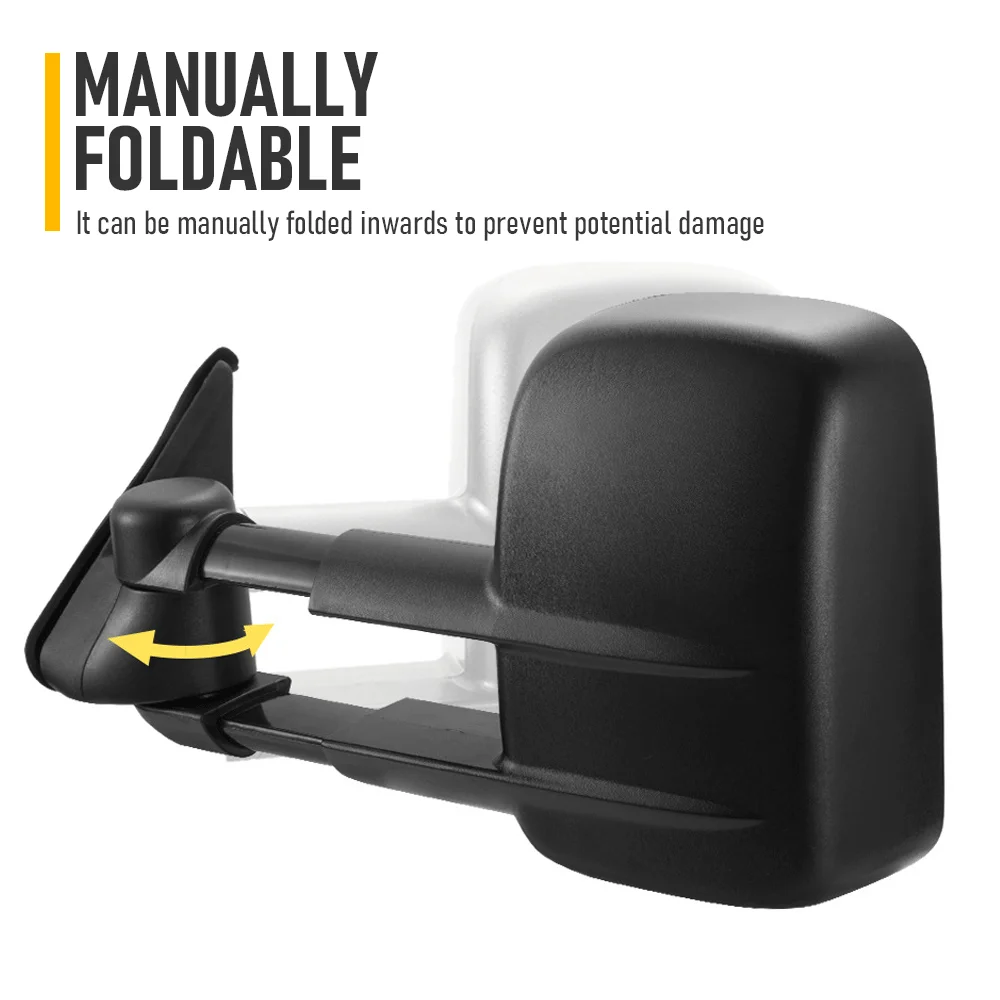 Enhanced Safety: Larger than stock mirrors, these towing mirrors provide better visibility to spot potential hazards.