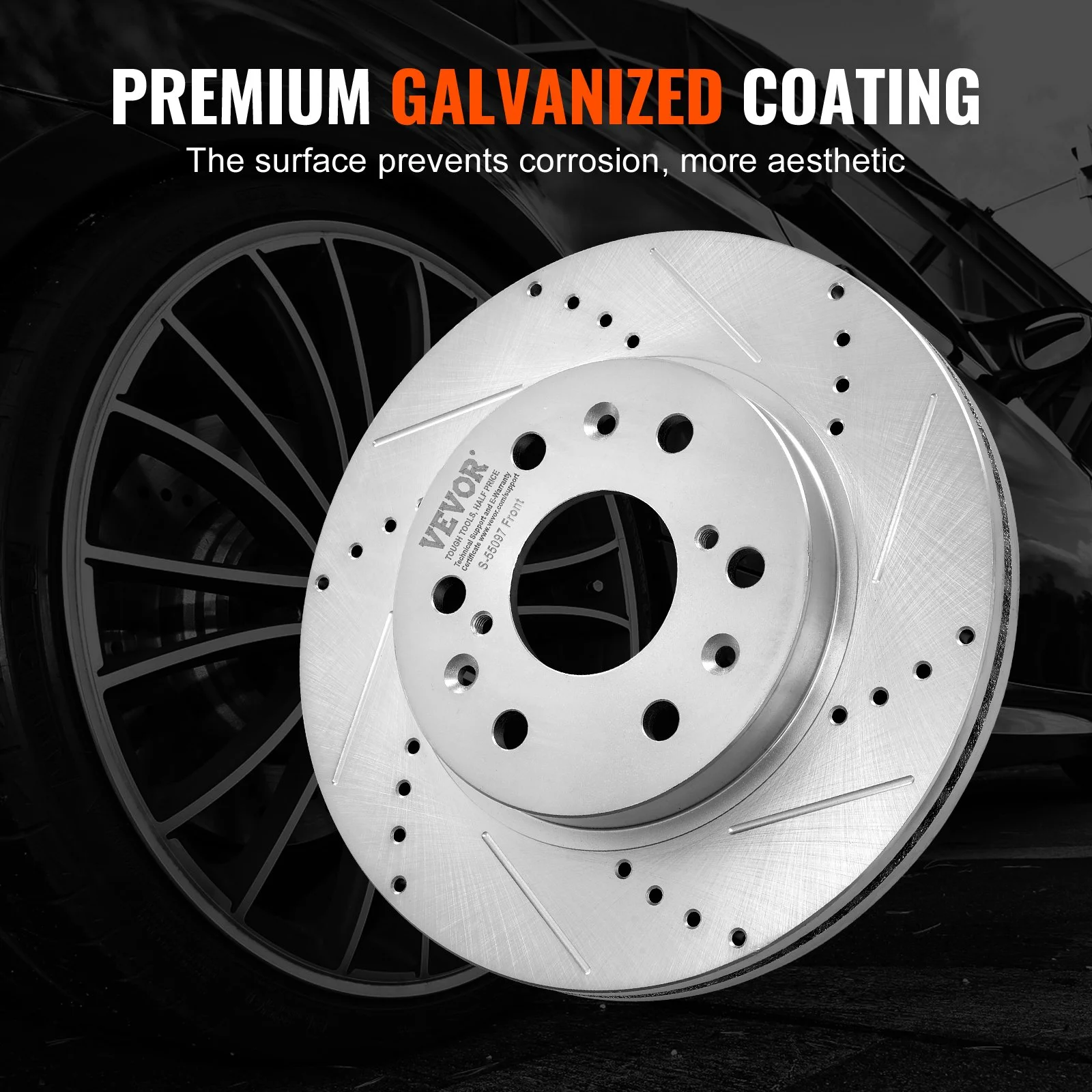 The brake disc surface is treated with high-quality galvanization to prevent corrosion, ensuring enhanced durability and aesthetics.