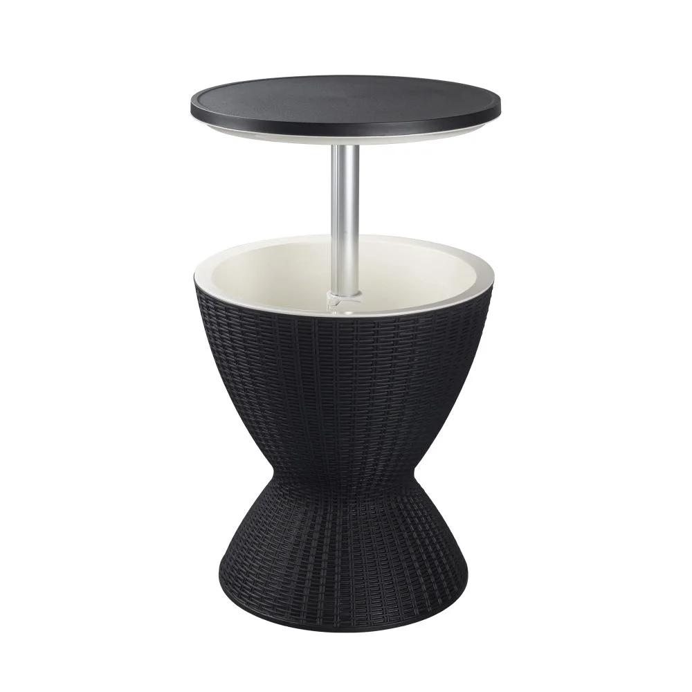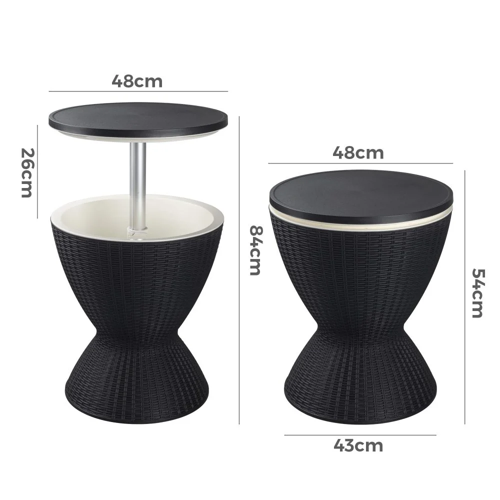 With this outdoor cool bar table, you can be ready to attend the next party, barbecue or relax by the pool. This is an affordable storage and entertainment solution. Its versatility and shape will amaze your friends and family. Whether you use it as a side table at leisure or as a yard cooler at the next barbecue, you will find that this assembly will become a fixture for your outdoor living space for a long time. The sturdy design leg provides the best support, and its internal space is enough to accommodate many bottles of beverage storage. In addition, it has a built-in drain plug, which can easily clean and heat insulation, and can keep the beverage cold for up to 12 hours. The fashionable modern design is integrated with a variety of indoor or outdoor patio decoration, with a lock in the middle, which is convenient for fixing the table and getting drinks. The weather-resistant plastic resin material can be placed outdoors without fear of rust and other weather-related damage. Easy to assemble, maintain and use, it is the perfect center for outdoor parties or summer parties.