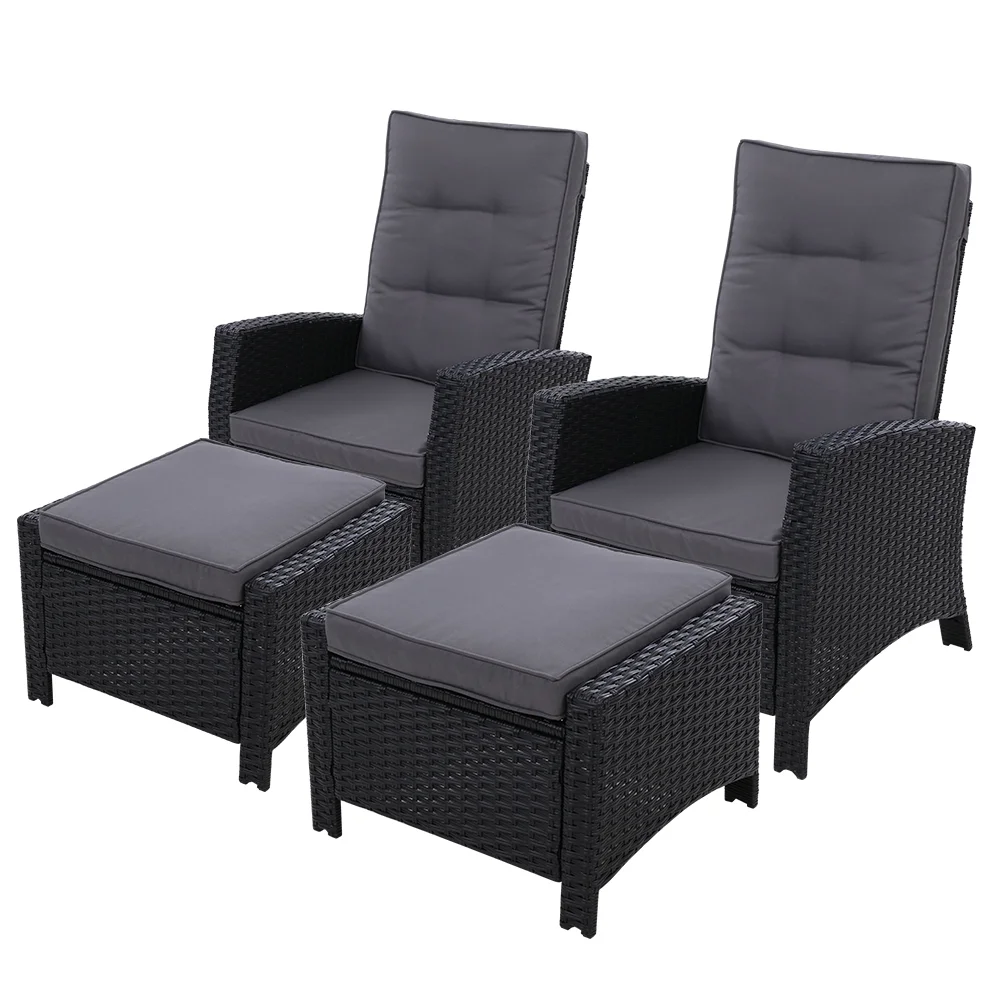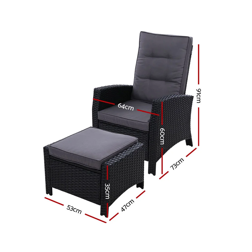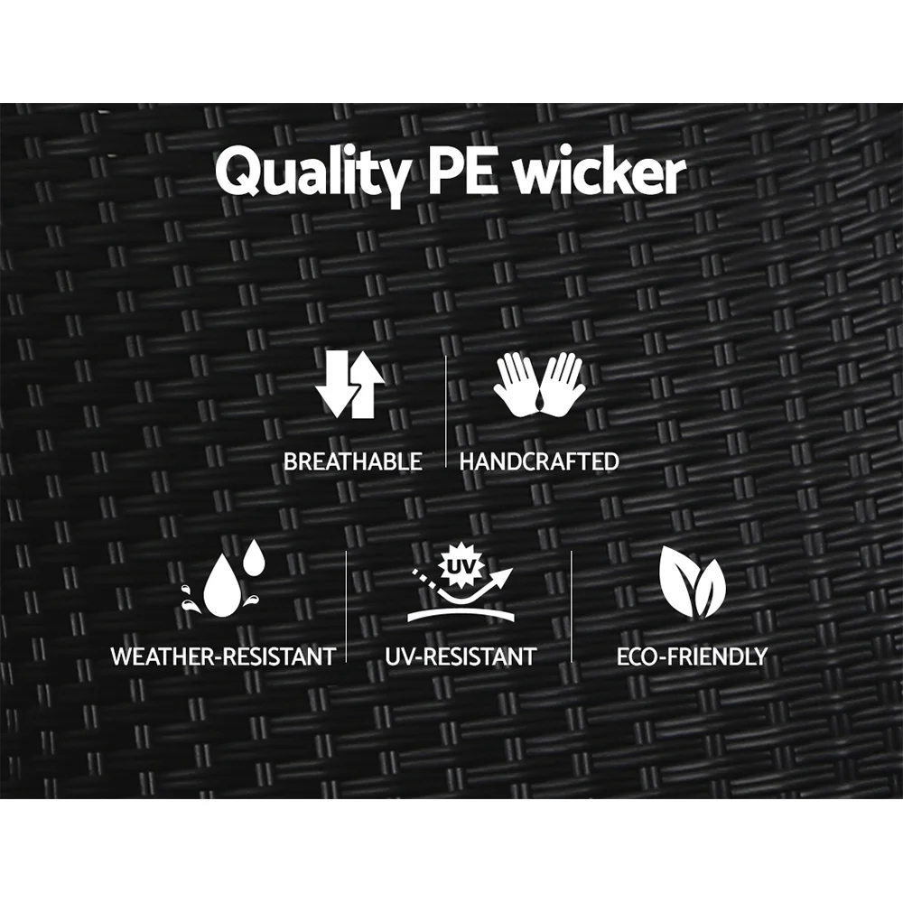Now you can really sit back and chill in the outdoors with the Gardeon Wicker Recliner Set. Comprising an oversized recliner and matching ottoman, the outdoor ensemble is everything you need for relaxation in elegant wicker style. The set is made of UV-resistant and weather-resistant PE wicker so that you never have to worry about rust, corrosion or weathering issues. The heavy-duty steel frame, also wrapped in wicker, is sturdy and hardy and will stand up to robust use easily. More importantly, the recliner has five inclination settings, from 110° to 160°, to suit your angle of rest. Better still, the seat cushion is made of high-density foam for ultra comfort while the zipped seat cover is removable and washable. Not least, the useful ottoman is just perfect for putting your feet up. Yes, it is indeed paradise under the sun, moon and stars. Have it outdoors or indoors, the wicker recliner set is equally at home with its exquisite design and unique presence for any home decor enthusiast.