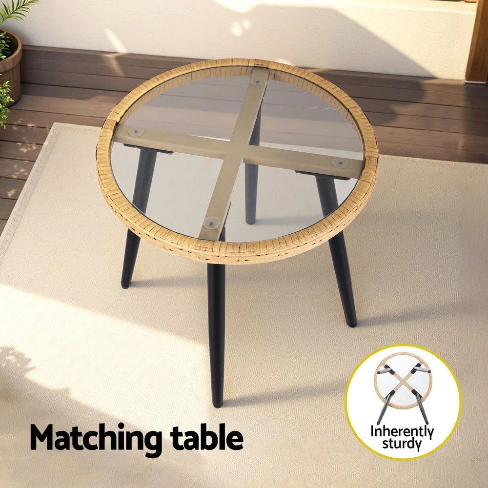 Get outdoors just in time for summer with the Gardeon 2-seater Lounge Setting. Featuring 2 stylish PE wicker chairs and a matching coffee table, there's plenty of space for the perfect afternoon tea. The set is easy to assemble, and you can easily configure the seating into your perfect outdoor set-up. The seats feature a solid steel frame covered by handcrafted PE wicker, while the outdoor cushions use water-resistant, UV-resistant covers. The tempered glass coffee table is elegant and sturdy, with plenty of room to hold your outdoor essentials. Maintenance is as easy as wiping down the furniture, and you can remove the cushion covers for even easier cleaning. So what are you waiting for? Make the most out of the beautiful weather with a Gardeon 2-seater Lounge Setting.