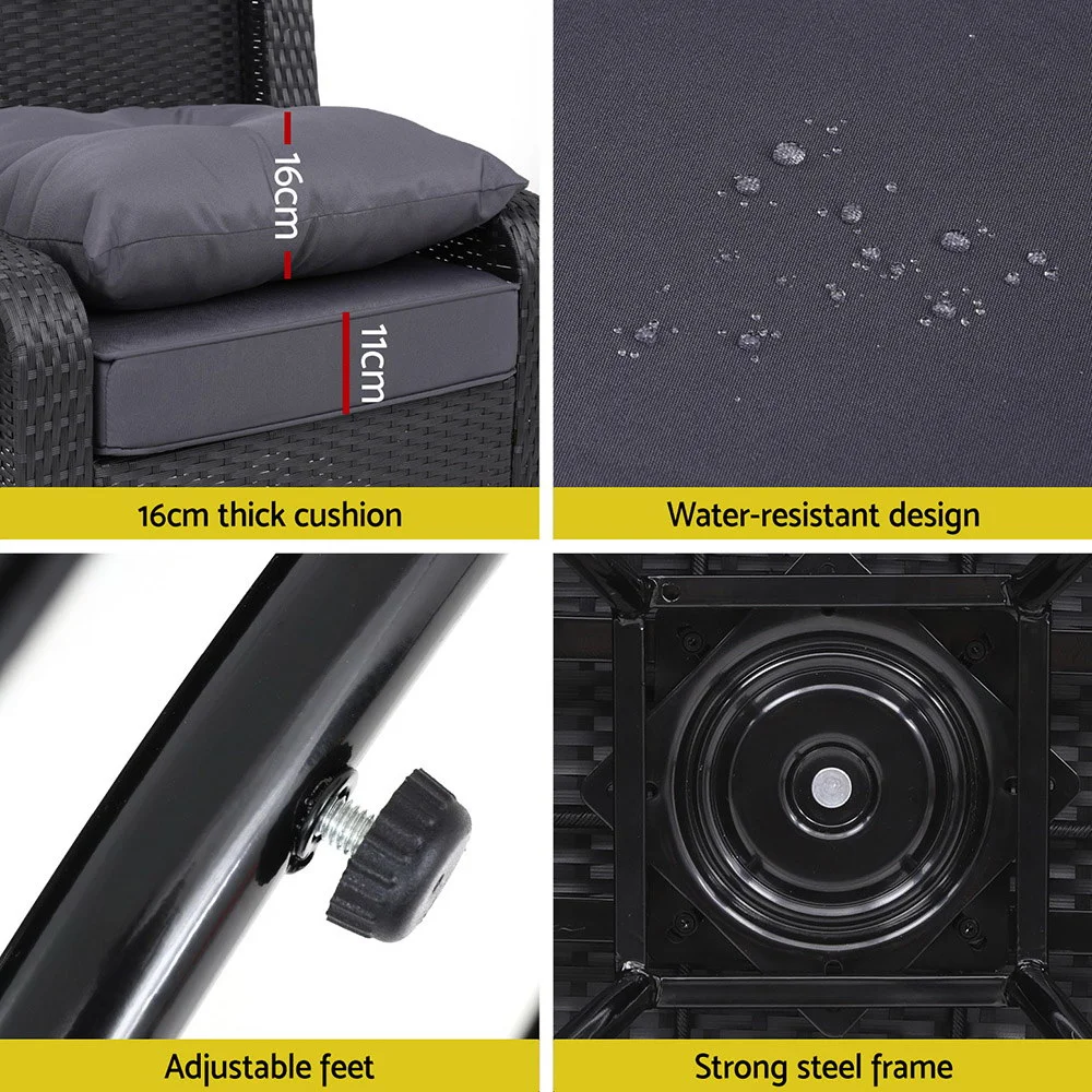 Say goodbye to uncomfortable outdoor furniture and say hello to Gardeon swivel outdoor furniture set. With this furniture set, you can create a relaxed outdoor setting easily that makes a perfect spot for peaceful reading or just unwinding on sunny afternoons with your partner. This outdoor swivel furniture set comprises of two swivel chairs and a side table. Its weather-resistant and UV-resistant design makes it suitable for both indoor and outdoor use. The outdoor swivel furniture set is crafted from durable PE wicker with heavy-duty powder-coated steel frame for ultimate sturdiness. Its meticulously woven PE wicker ensures it lasts long and looks desirable. The two chairs come with 360? swivel mechanism, which enables you to face any direction easily, and the soft cushioned seat makes it utterly comfortable to sit for a longer time without experiencing any pain or discomfort. The cushions have removable covers for easy cleaning and washing, and the UV-resistant properties prevents the cushion cover colour from fading. Furthermore, the side table has 5mm thick tempered glass top for durability and strength. Bring home our Gardeon swivel outdoor furniture set for your space today. This versatile swivel furniture set can be styled in multiple ways. So put on your creative hat and start styling.