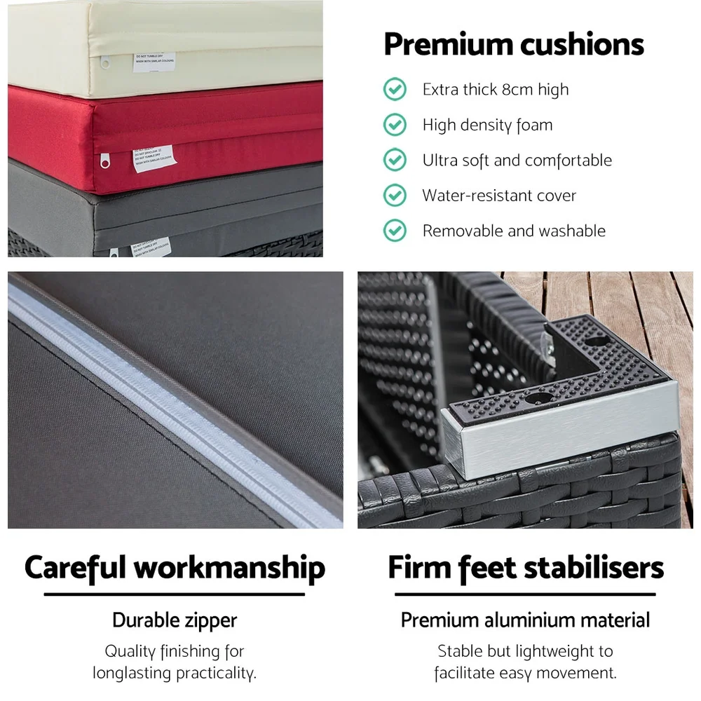 LONDON RATTAN 1 Seater Outdoor Ottoman Modular Wicker Lounge Furniture, Grey