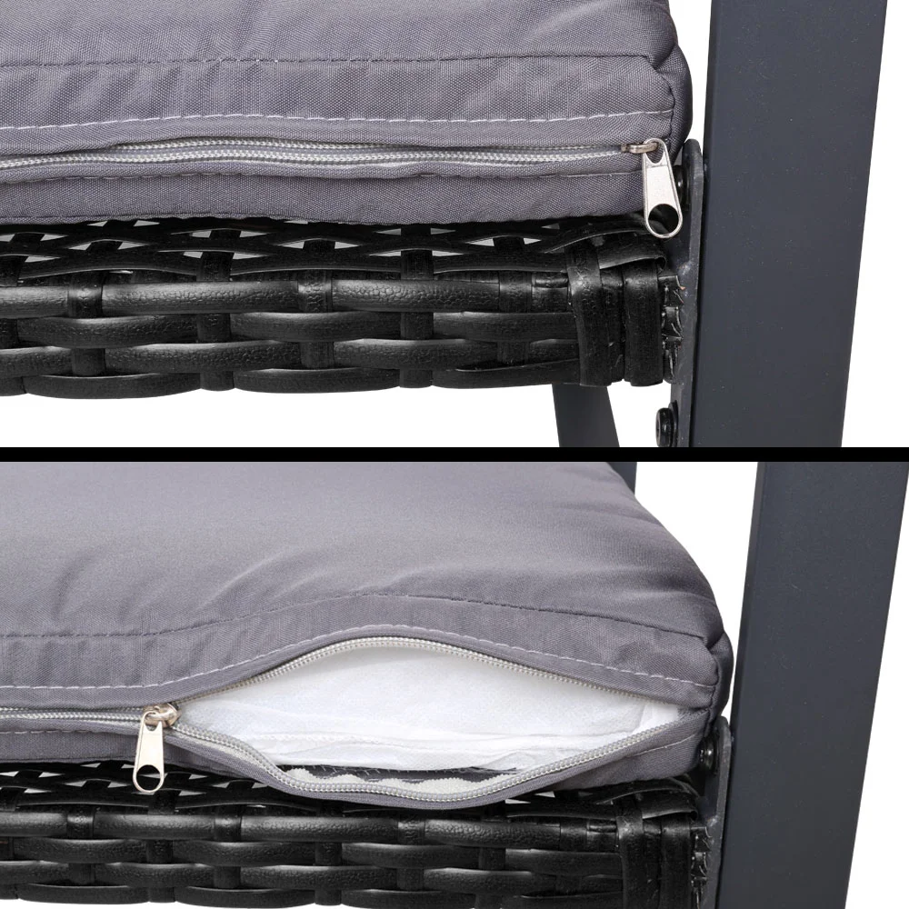 Great for any balcony or patio area, our Gardeon 4-pc Outdoor Set simply looks inviting and elegant from any angle. From its sturdy powder-coated frame and UV-resistant PE wicker to the ultra-comfortable 1000g cotton-filled 5cm thickness cushions and 5mm tempered glass table top, the set is simply finished in extraordinary workmanship. The cushion covers are almost removable and washable for easy maintenance. Best of all, you need not use it just for the outdoors, as this marvellous set is just as appealing in your living room, bedroom or any room that deserves its fine presence.