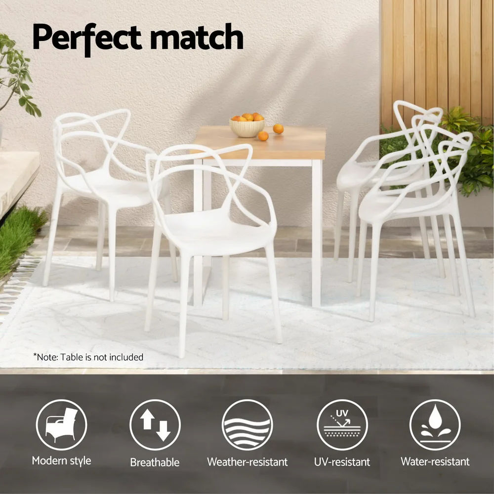 Practicality meets style with Gardeon's new Stackable Outdoor Chair. The quality PP frame is water and UV-resistant, making it the perfect chair for outdoor use in any weather. This classic modern design has a well-ventilated backrest and gentle curves that will complement most home decor styles. The smooth, tough surface is incredibly easy to clean and maintain. The lightweight and stackable design makes the chairs easy to store, so you can bring them out or in at a moment's notice. Use indoors or outdoors for a modern look anywhere in the home. With no assembly required, your Stackable Outdoor Chair Set will be ready to go from the moment it arrives at your home. Enjoy the great outdoors in style with Gardeon.