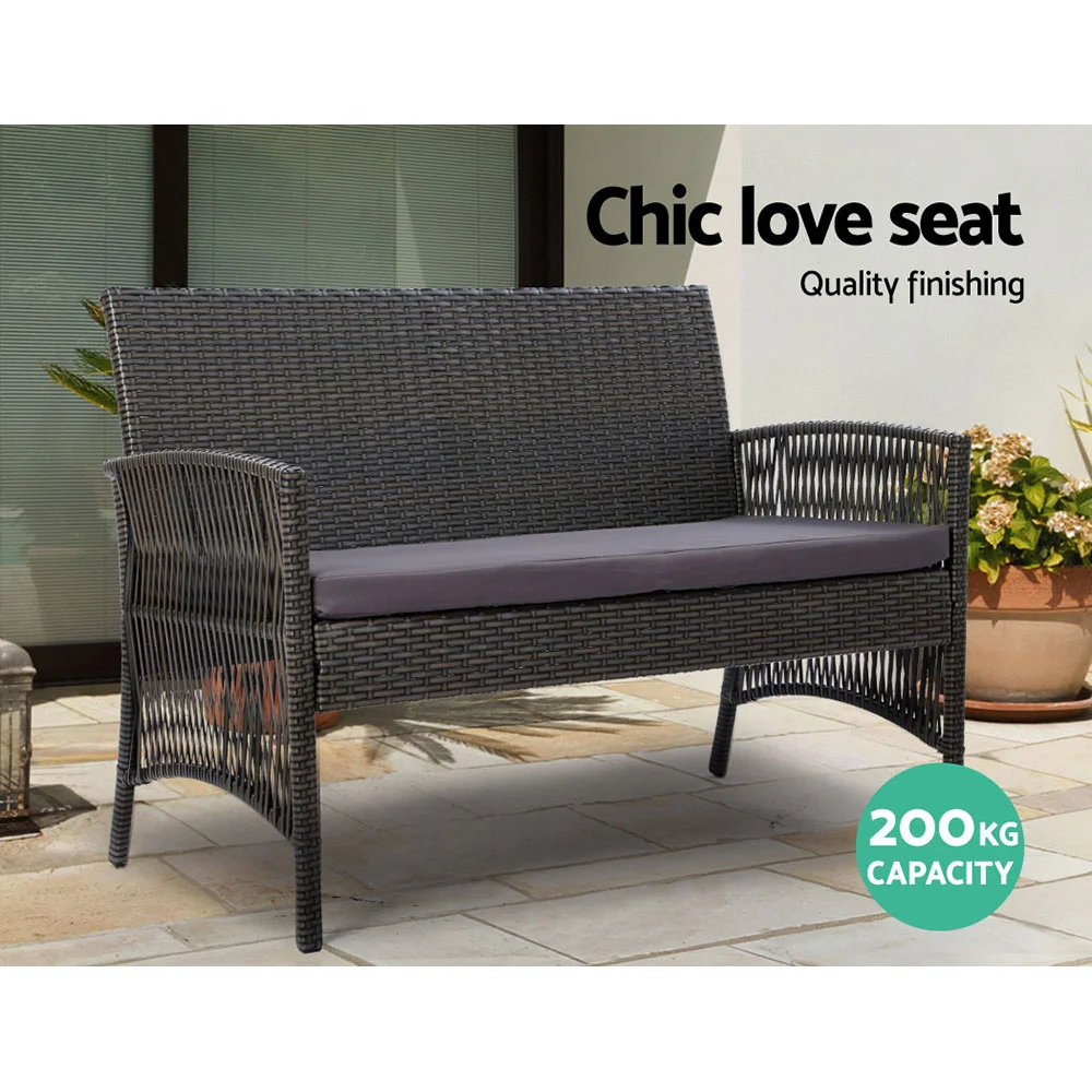 Meticulously crafted, our Gardeon 4-piece Rattan Outdoor Set comprises two armchairs, a two-seater and a matching table for a beautiful integrated look. Its presence will definitely add panache and style to your deck, patio or even living room. Made of PE wicker and a sturdy steel frame, this set is designed to last through all weather and the test of time. The 5mm thick tempered glass top with non-slip suction pads for the table also ensures strong and safe use with total peace of mind. Not least, the cushion covers are removable and washable to maintain their pristine appearance. There is even a bonus storage cover included for you to protect the set from sun and rain when not in use, so that you can keep enjoying your garden parties for many years to come.
