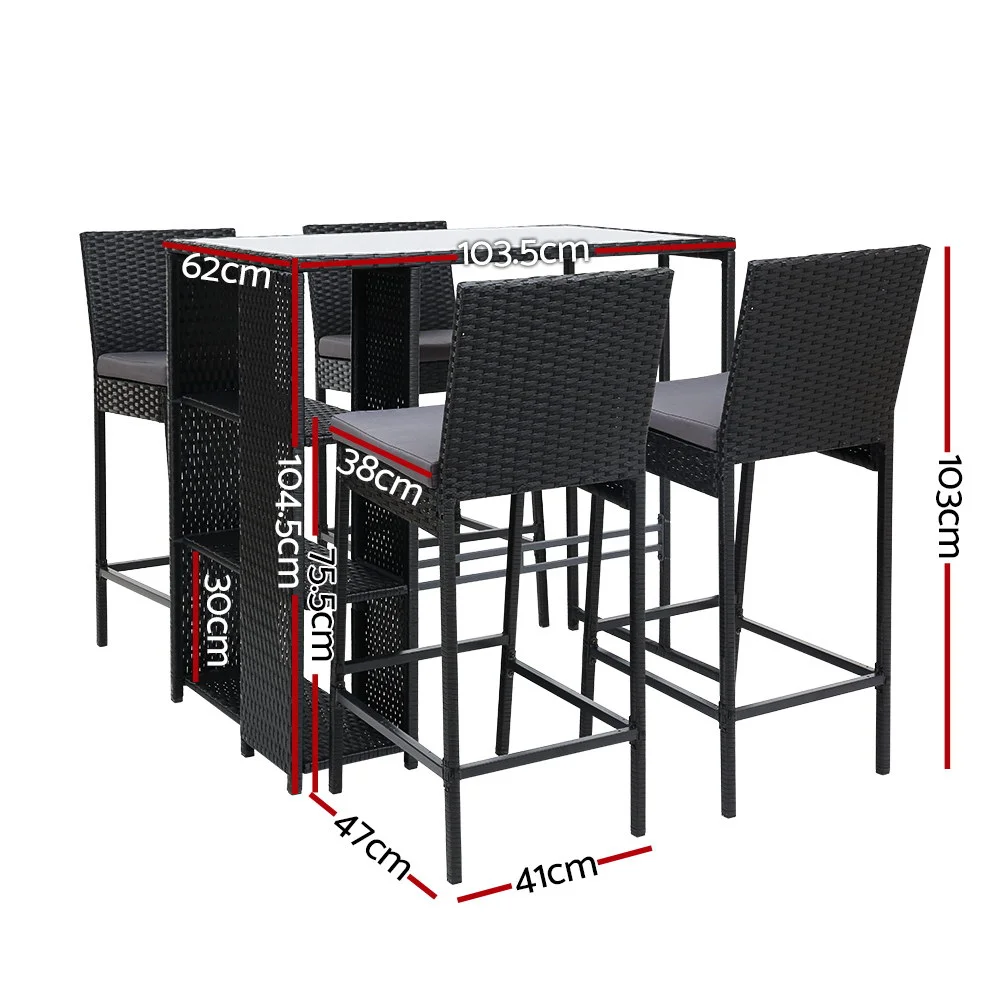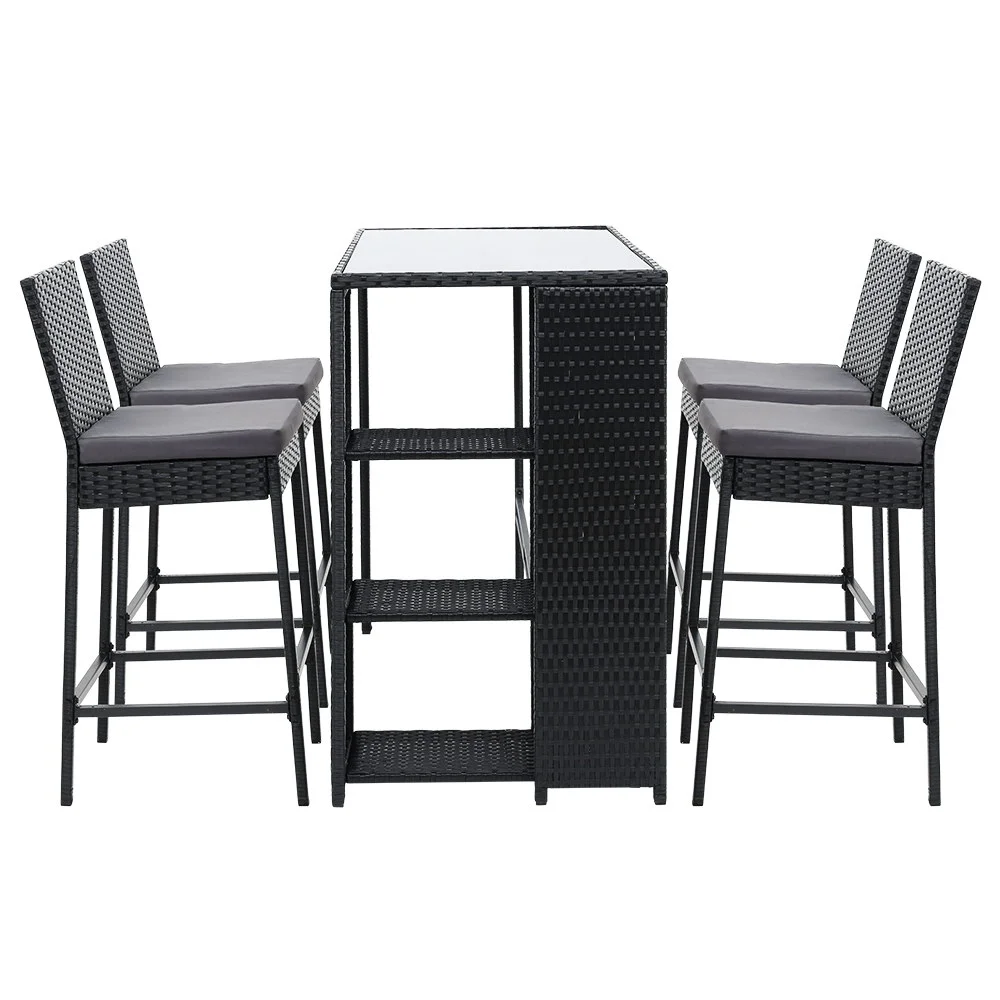 Looking as stunning as ever in an upgraded design, our Gardeon Outdoor Bar Set certainly deserves its coveted space in your lovely backyard, deck or patio. With its chic and trendy profile, the bar set comes with a table and matching bar stools, with ample seating for all your friends and family. And as the seats have inclined backrests and extra-comfy 5cm thick foam cushions, you can socialise for hours on end without aching backs or bottoms. If you spill your drink, the 5mm tempered glass tabletop and removable seat cushion covers make cleaning up hassle-free. With powder-coated steel construction and quality PE wicker finish, the bar set is designed to handle the rain and sun without any worries for years to come. When not in use, you can save loads of space by pushing 2 chairs under the table.