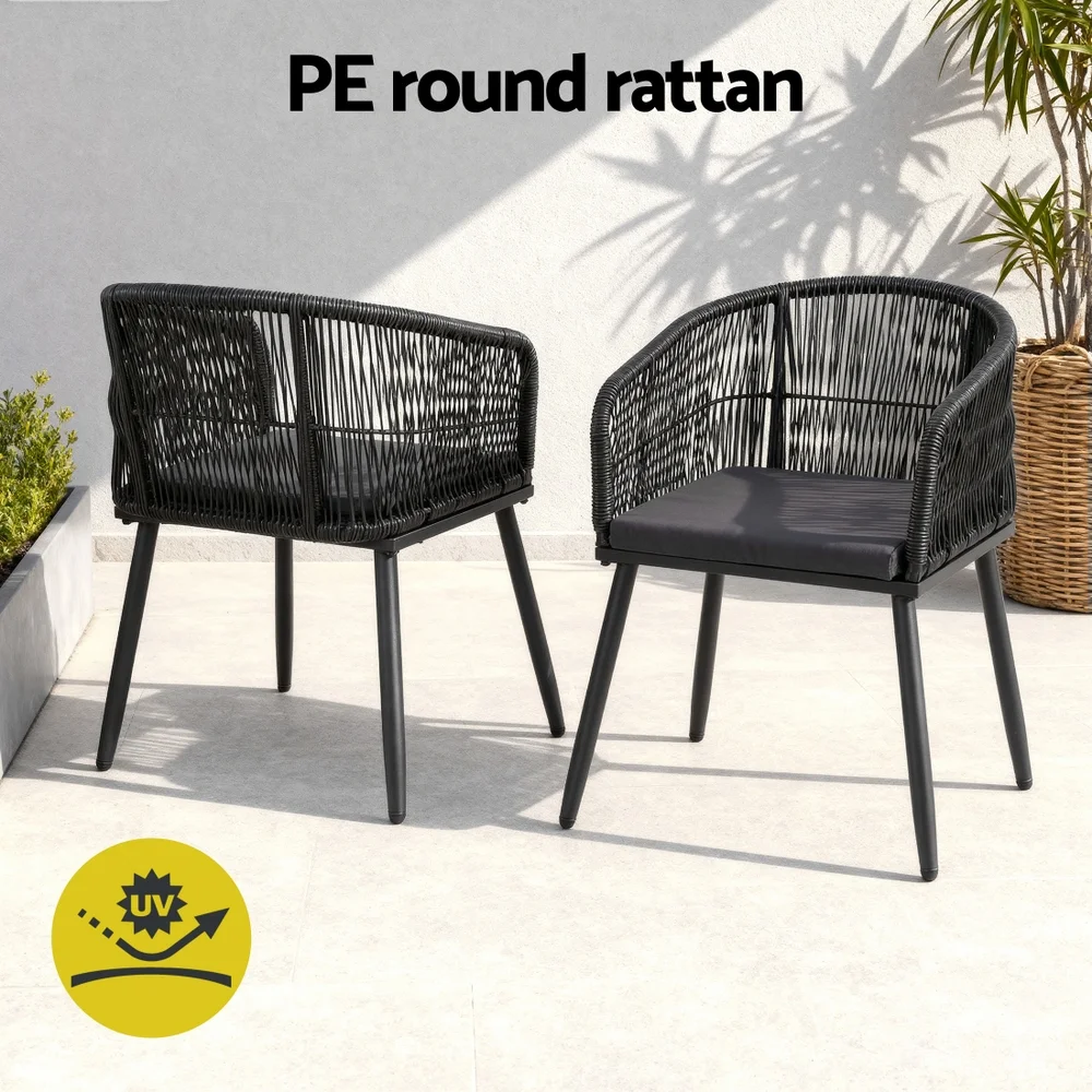 Gardeon 3PC Outdoor Bar Set Stools Dining Chairs Table Patio Furniture Bistro Set Steel Black