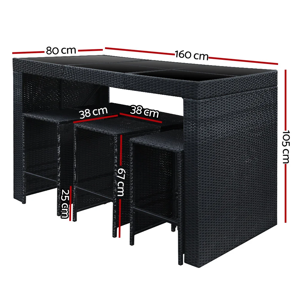 With its chic and trendy profile, the PE Wicker Bar Table and Stools Set easily accommodates up to six very happy people with its 7-piece configuration. Whatever's your choice, you can be assured of a very well-made and high quality outdoor set that is designed to handle the rain and sun without any worries for many years to come. Plus, the power-coated steel construction does help to keep it in good shape too.