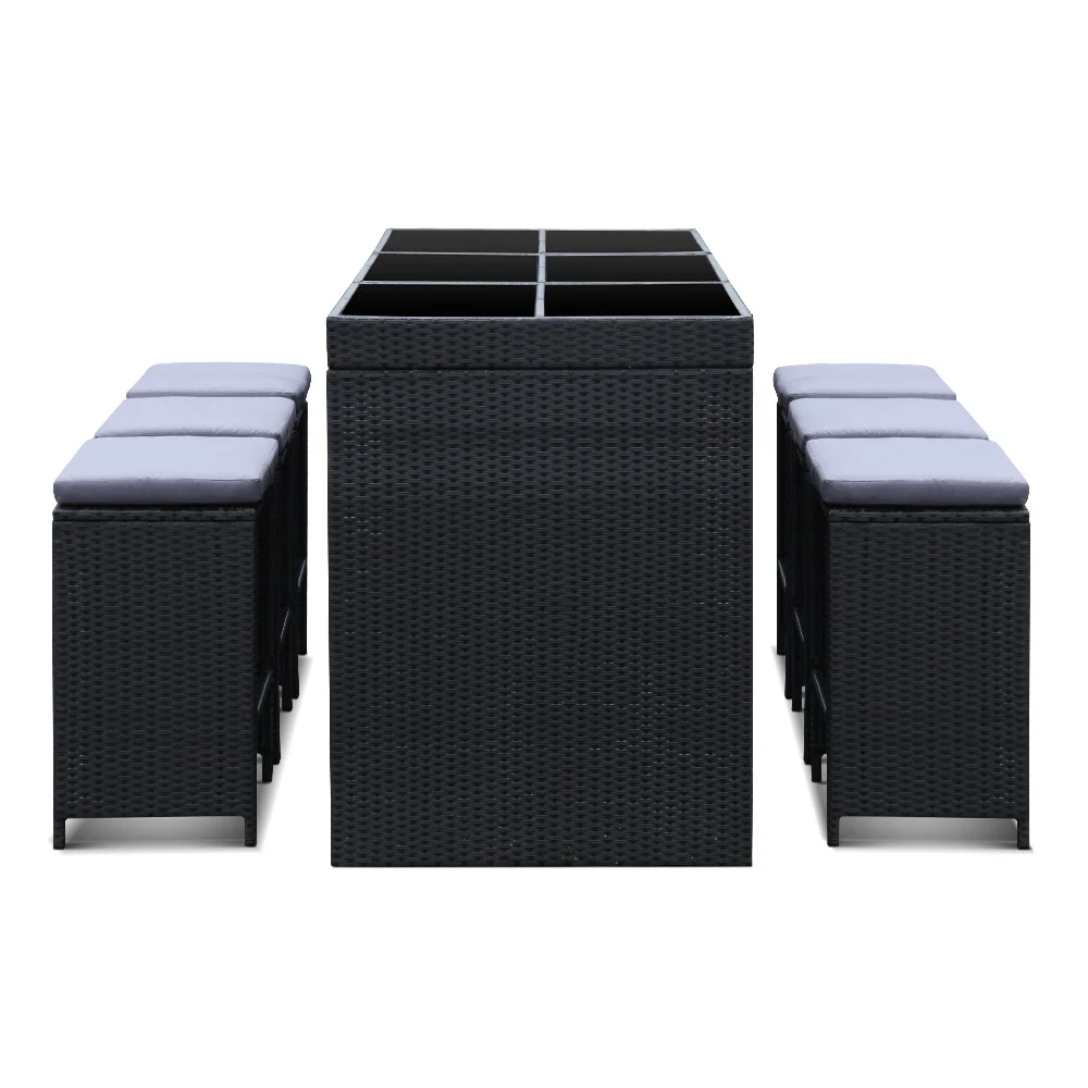 Looking as stunning as ever in black, our 7-pc Bar Table and Stools Set certainly deserves its coveted space in your lovely backyard, deck or patio.