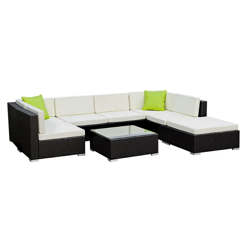 Leisure come easy with our Gardeon Outdoor Furniture Set. Our outdoor set promises luxurious and spacious comfort matched with long-term durability and robust use in any weather condition. With its UV-resistant PE wicker handiwork and heavy-duty aluminium frame, the stylish outdoor set is made to last. The table also comes with a 5mm thick tempered glass top for safety. Not least, the seat covers can be removed for washing and the set also include a water-resistant storage cover.Sofas need to be stacked before using storage cover.